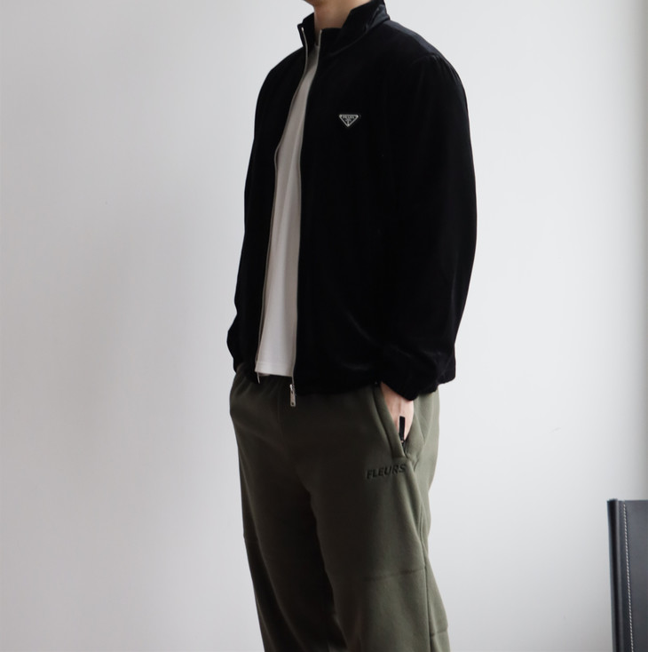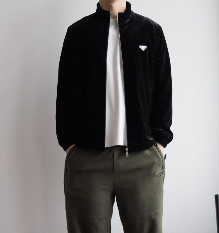 P.R.D 春季款 丝绒 黑色立领夹克外套