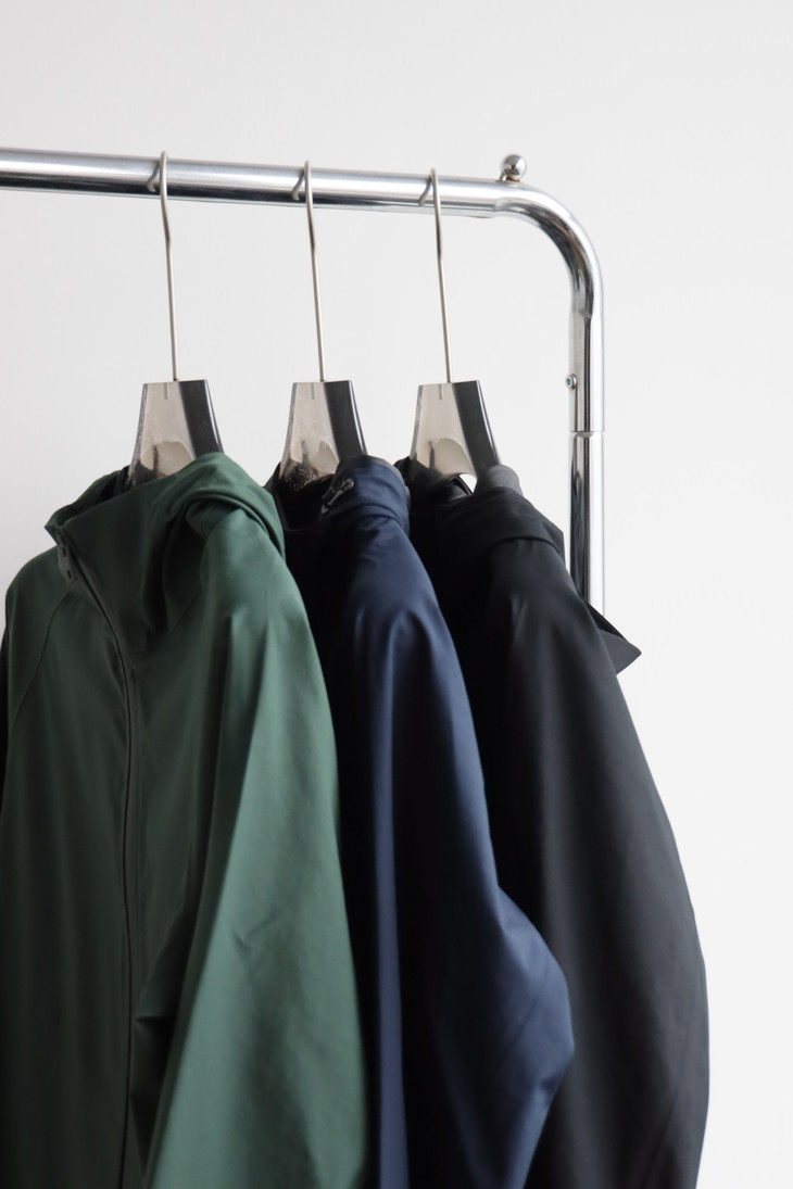男女同款,连帽可收纳到立领里。整体超前时髦的设计,可调节颈部宽松度的门襟半拉链开合设计