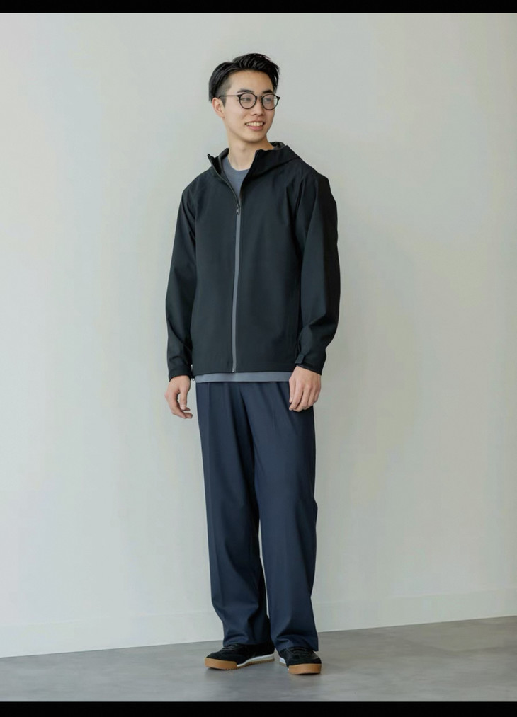 纯色基础款,版型好,轻薄方便易于打理,专贵在卖499的功能性面料外套,手感偏软有一定的弹性;