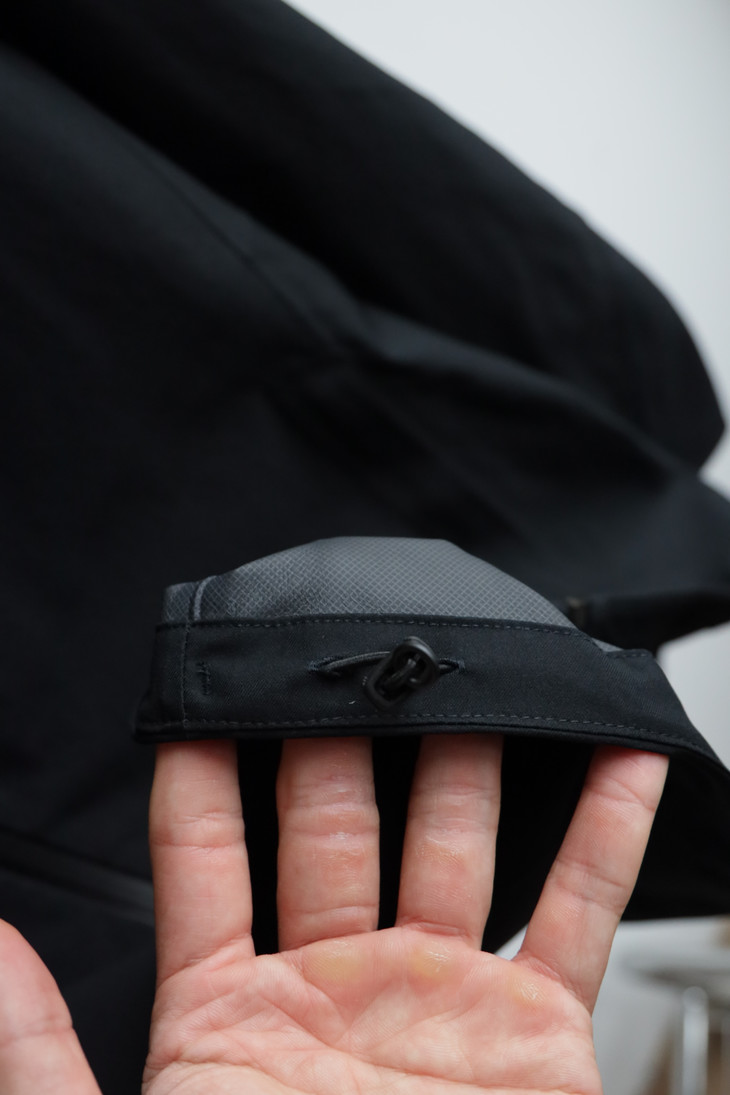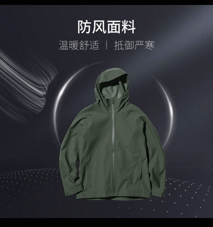 上身非常舒适,防风防水,透气,连帽设计下摆可调节抽绳;袖口魔术贴粘扣;