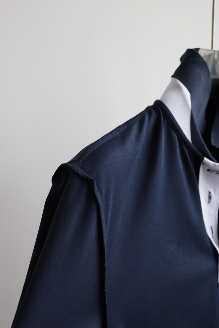速干针织面料翻领拼接,保证领口耐洗耐穿不易变形
