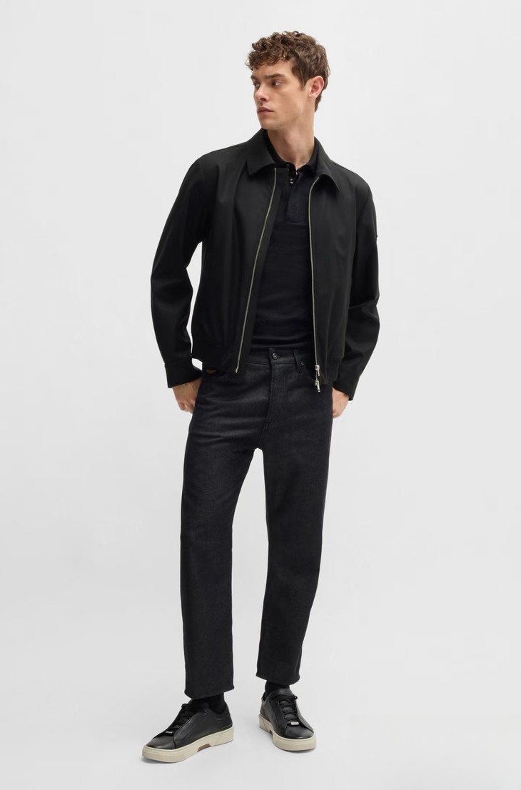 胸前金属3角标装饰轻便立领夹克。半拉链立领设计,经典都市户外休闲风格