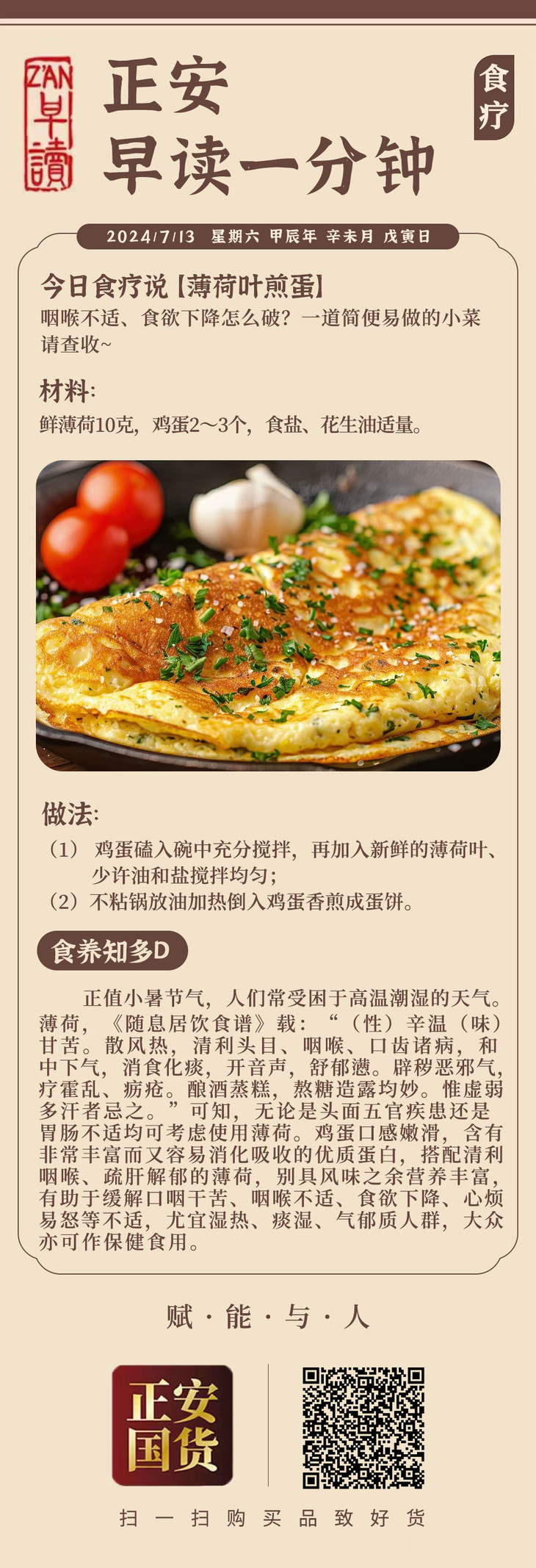 7月13日 应季食方【薄荷叶煎蛋】消食化痰