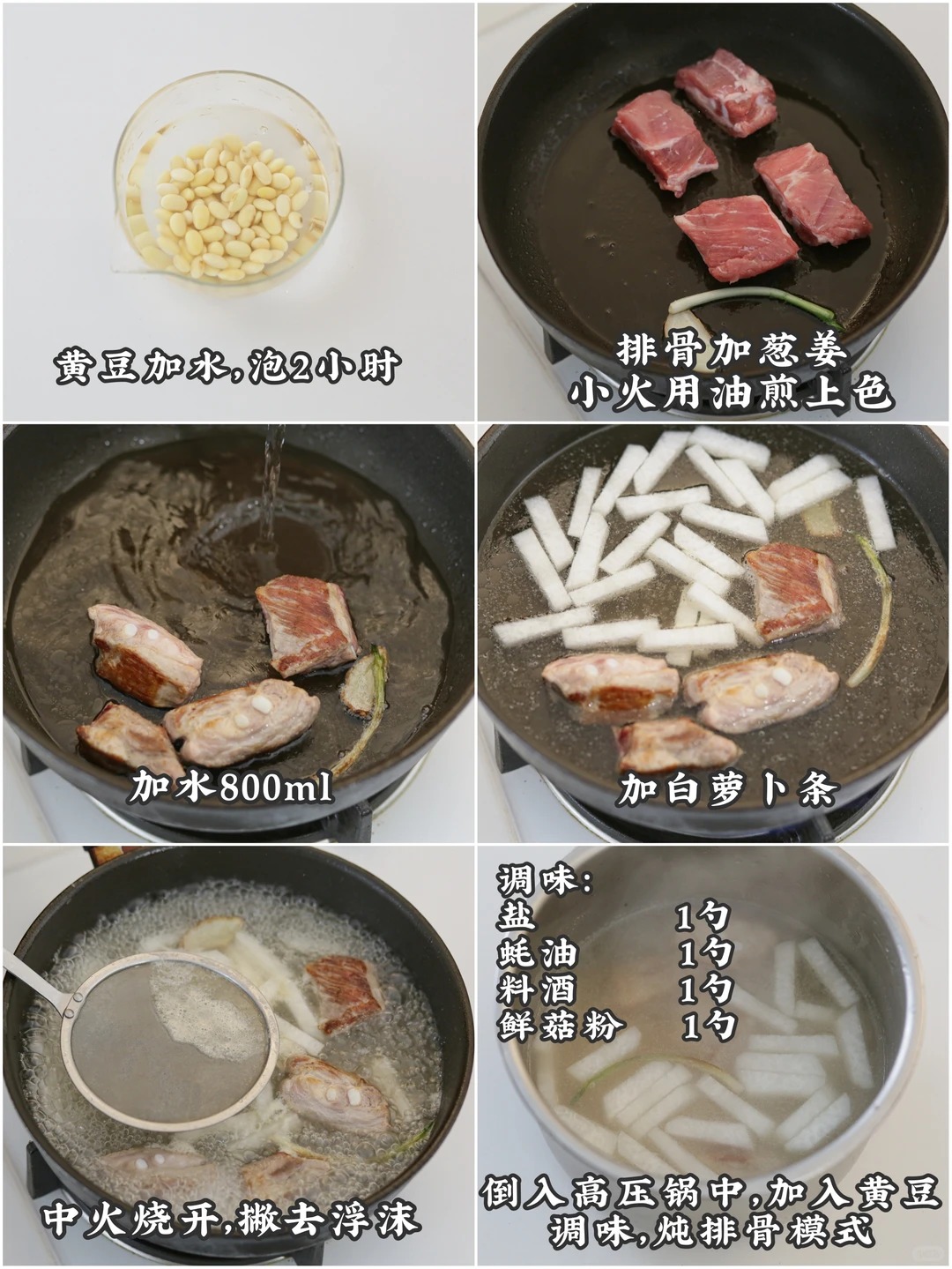 排骨去骨切小丁,黄豆炖至软烂,清淡补蛋白不油腻~