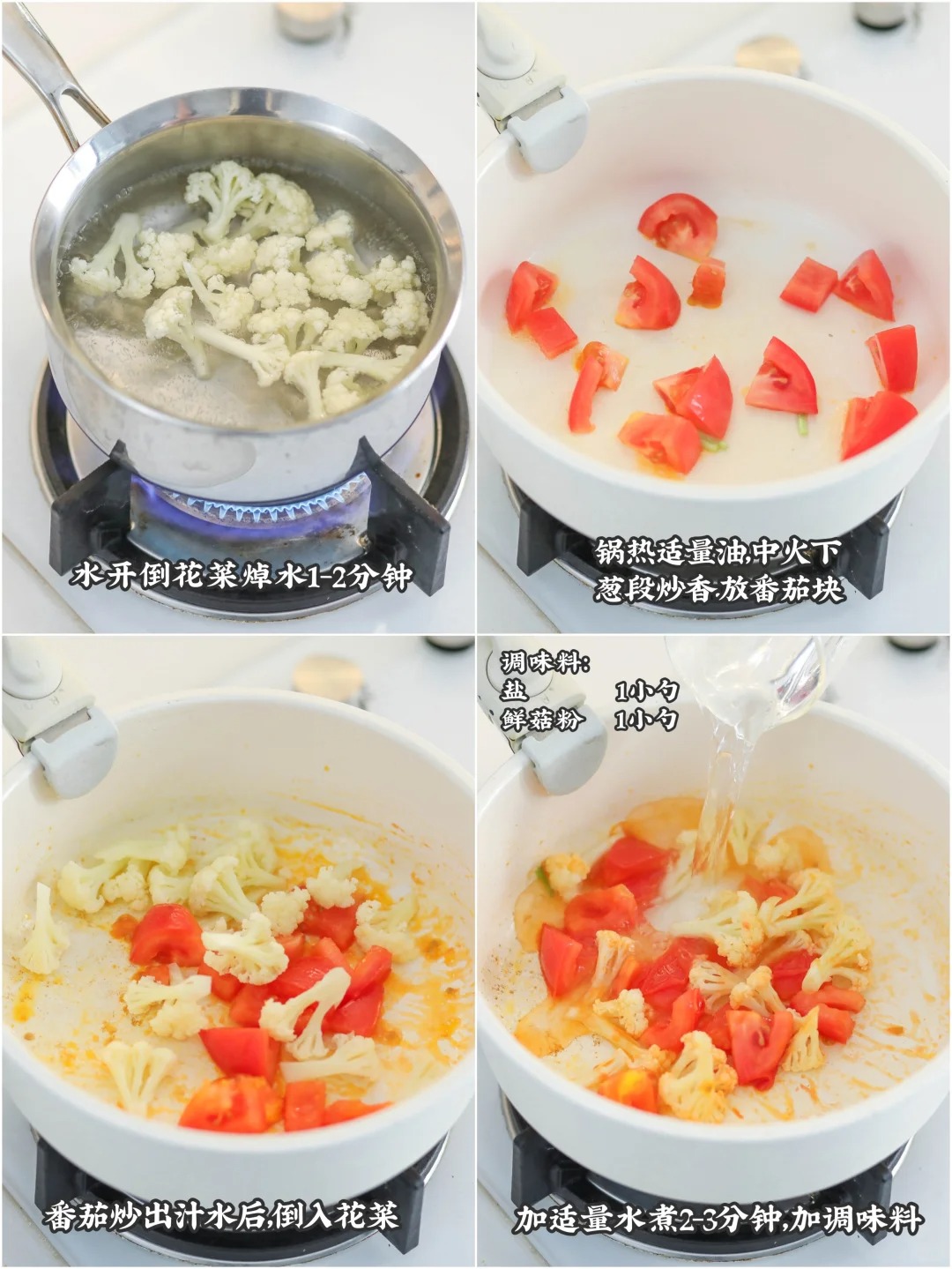 花菜切小朵易咀嚼,番茄汁少盐提味,酸甜口感娃更爱~