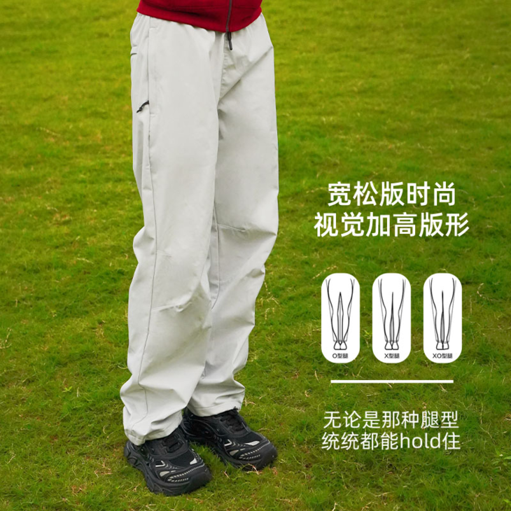 细节:插手口袋有拉链、腰间/裤腿有抽绳。