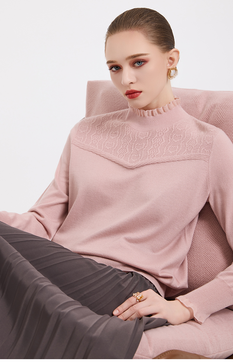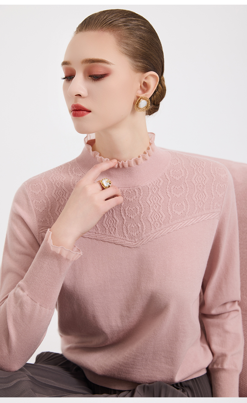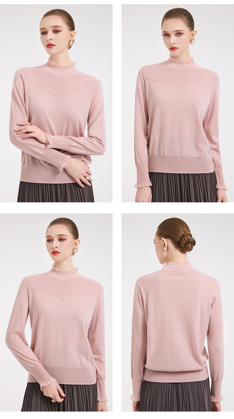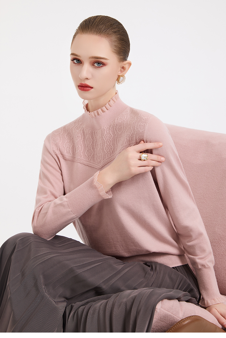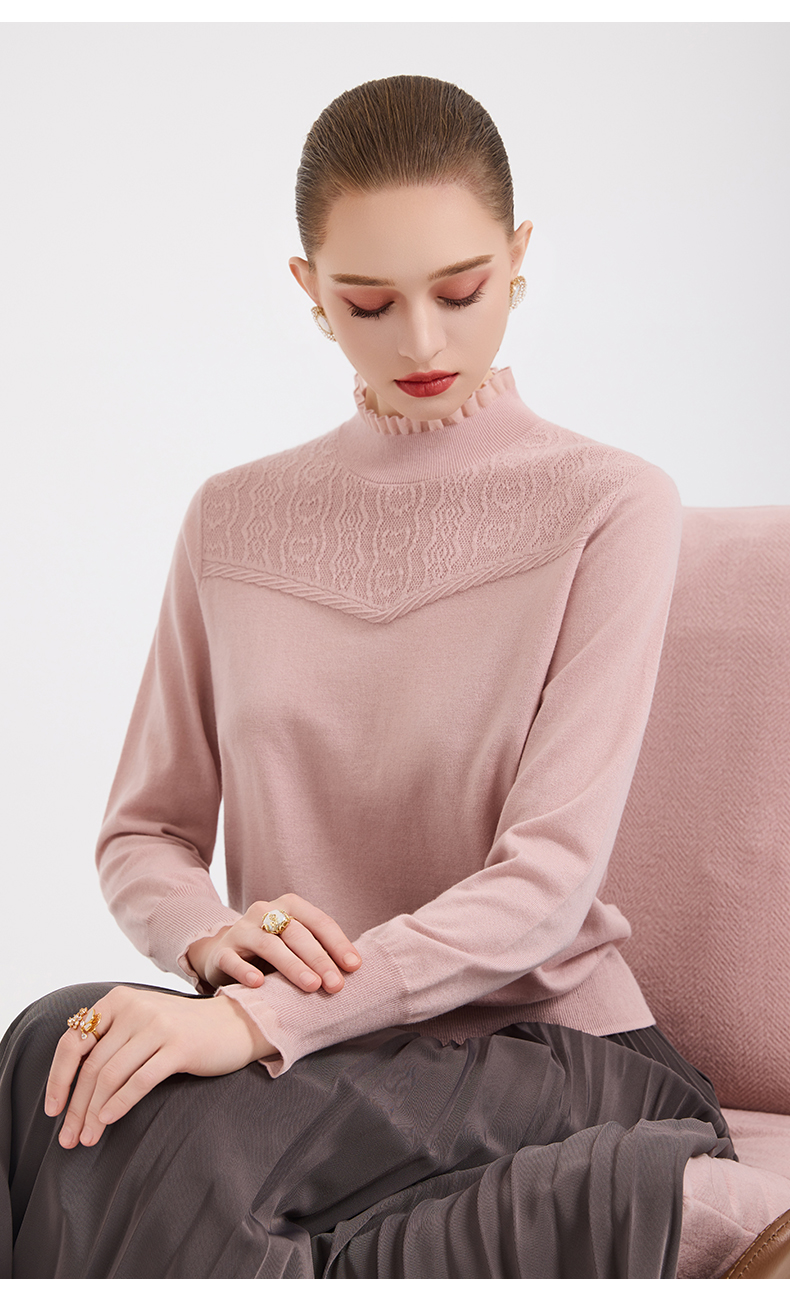 木耳边勾花拼接半高领羊毛保暖打底衫毛衫ED4M827