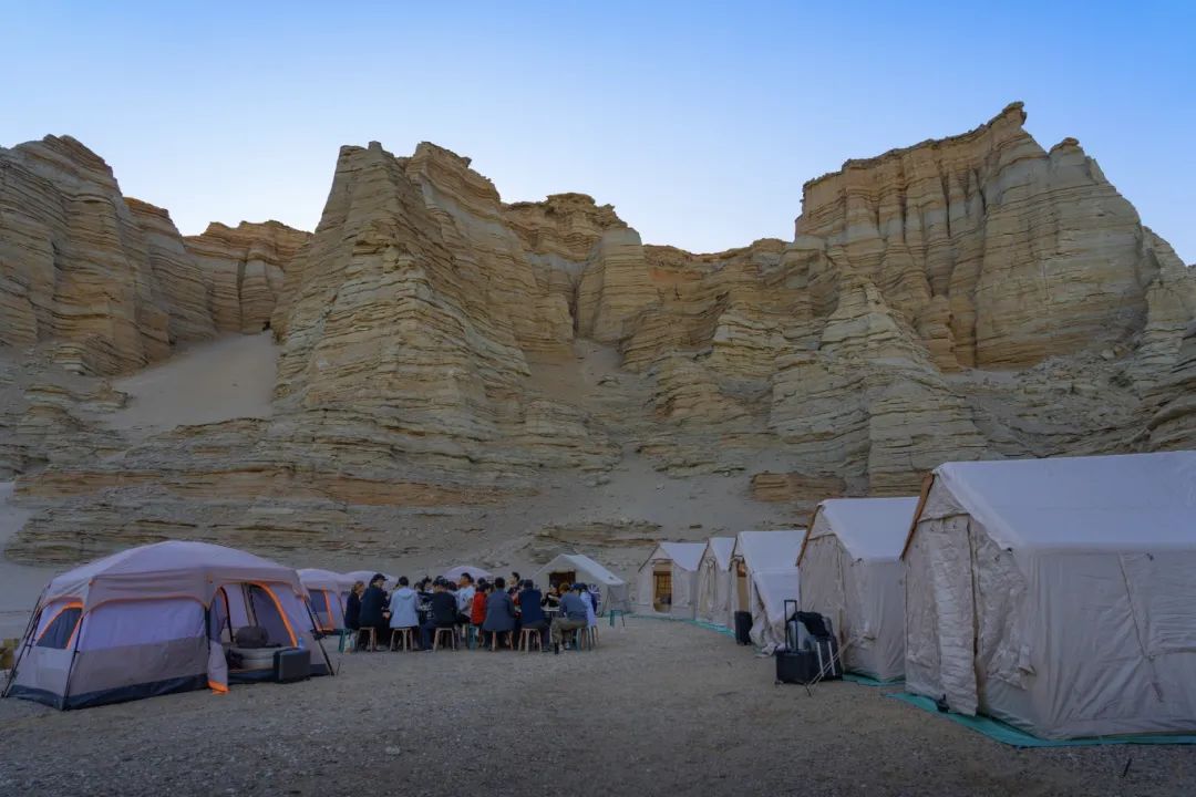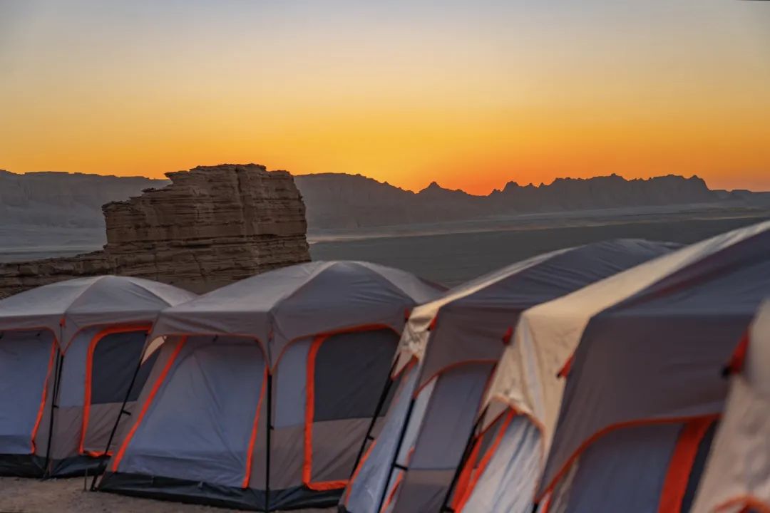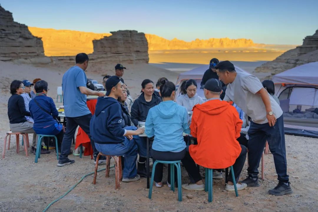 既然来都来了,肯定不着急走,我们将在这里露营一晚,这个设计最精妙处不在于无人区露营噱头,而是因为大海道最美的时间段在早晚,当阳光洒在雅丹上,原本土黄的色泽的雅丹瞬间害羞起来,越来越红,美轮美奂。