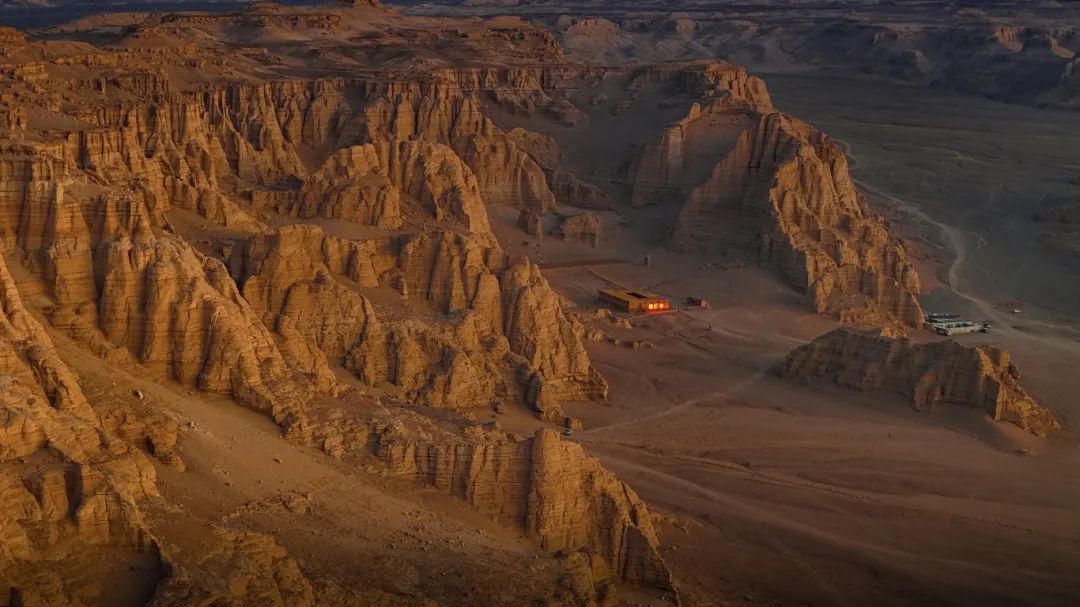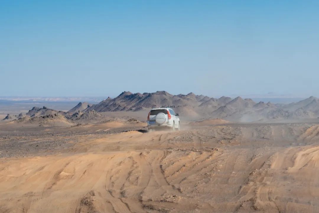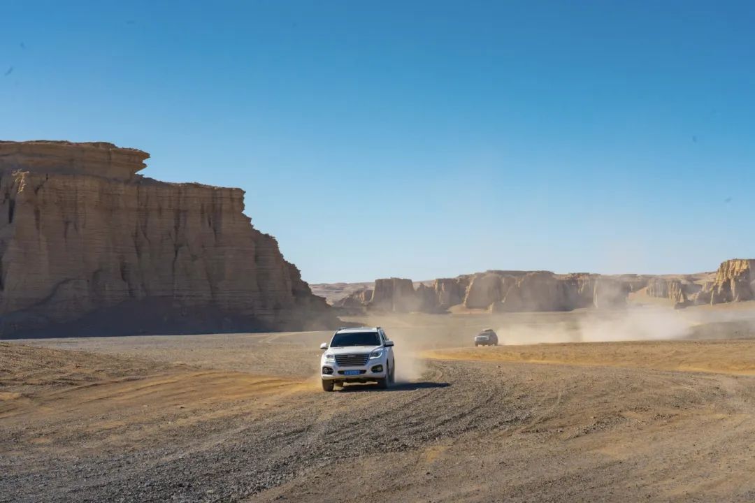 换上越野车后,随着车尾的尘烟飞起,就像是舞台剧上转场前的穿越前的烟雾特效,下一秒我们就闯入了异星球。
