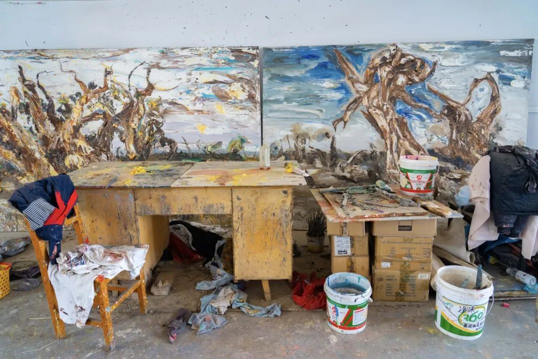 博物馆有两层,一楼是武老师为我们重现的罗布泊文化,那二楼他向我们分享的精神世界,二楼所有油画里画的最多的就是胡杨,每一幅胡杨都灵动富有生命力。