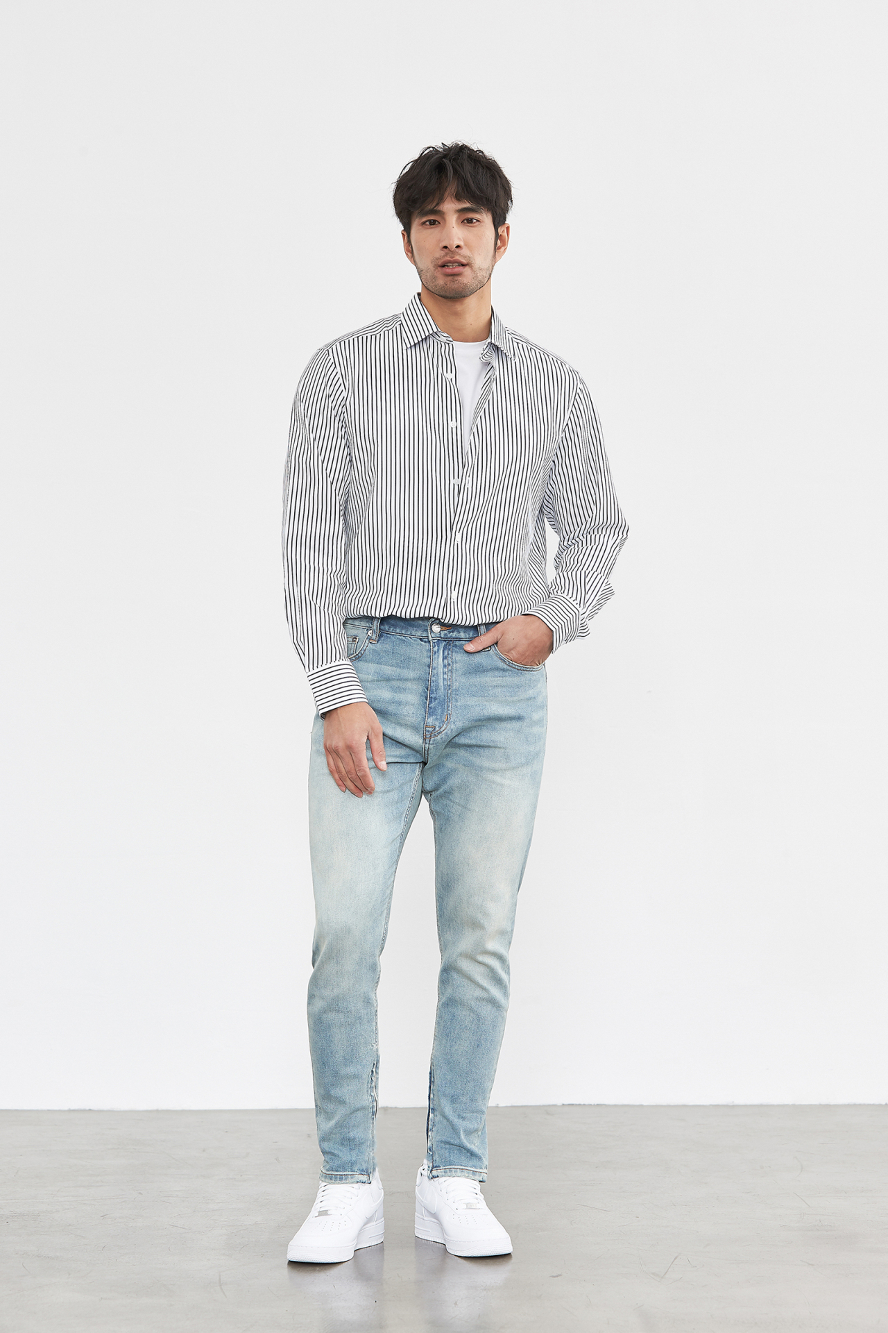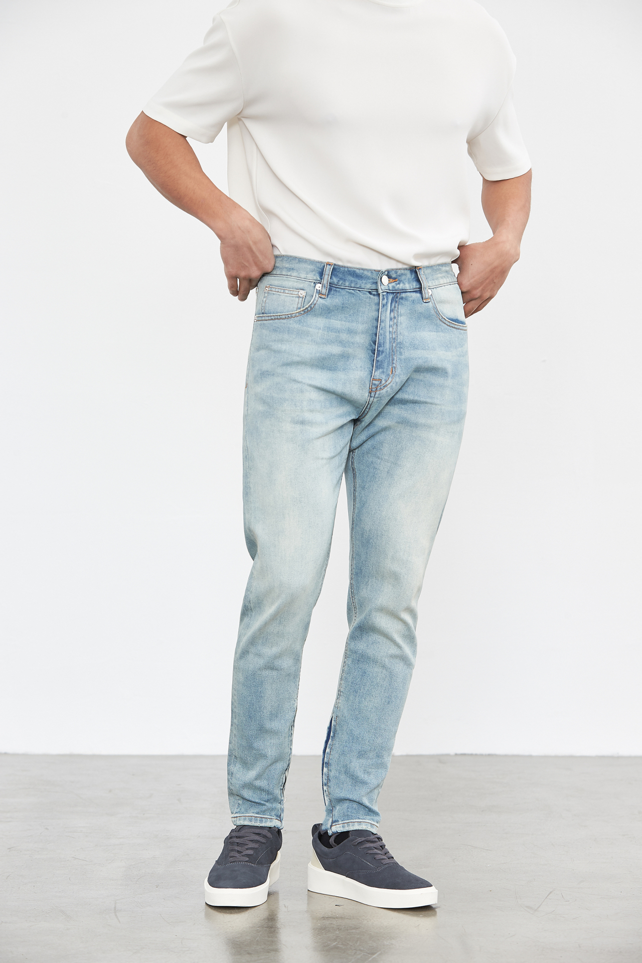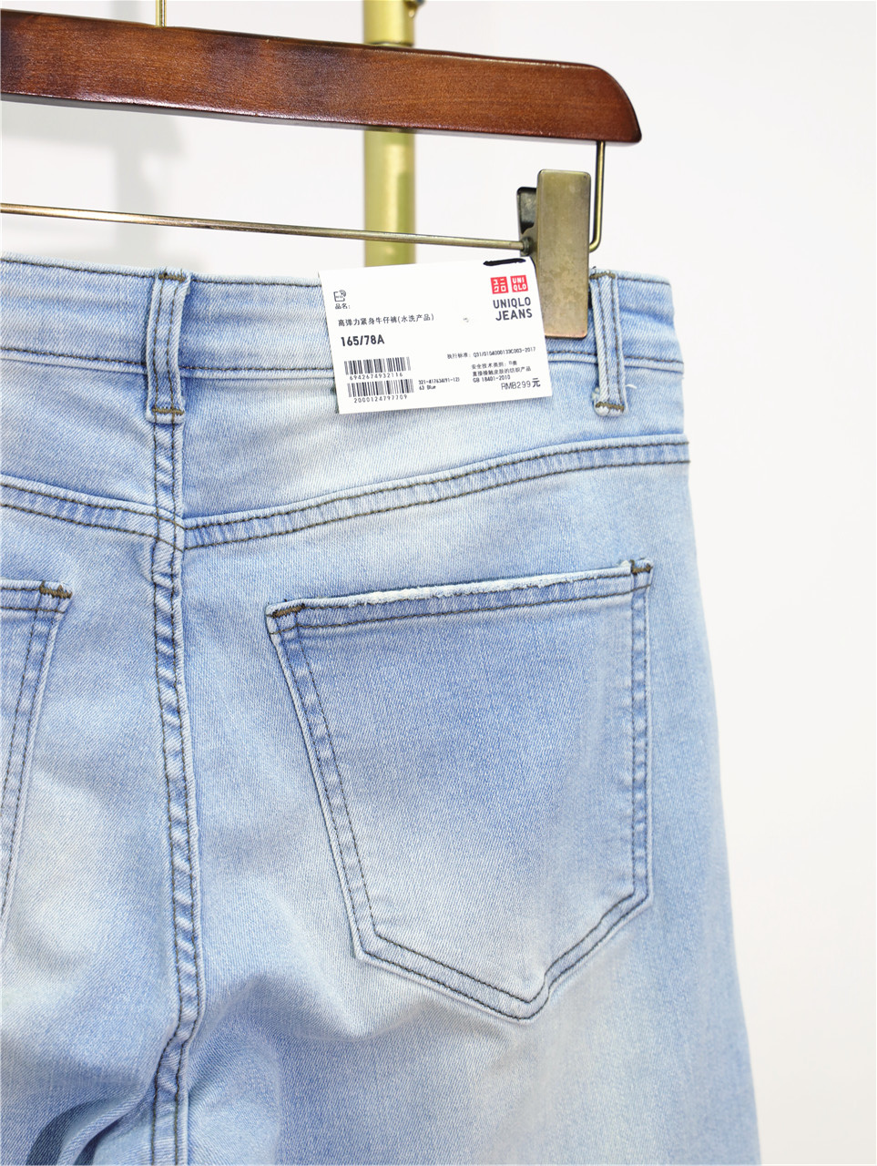 日单U.N.Q 男款高弹力水洗磨白紧身牛仔裤(水洗产品)