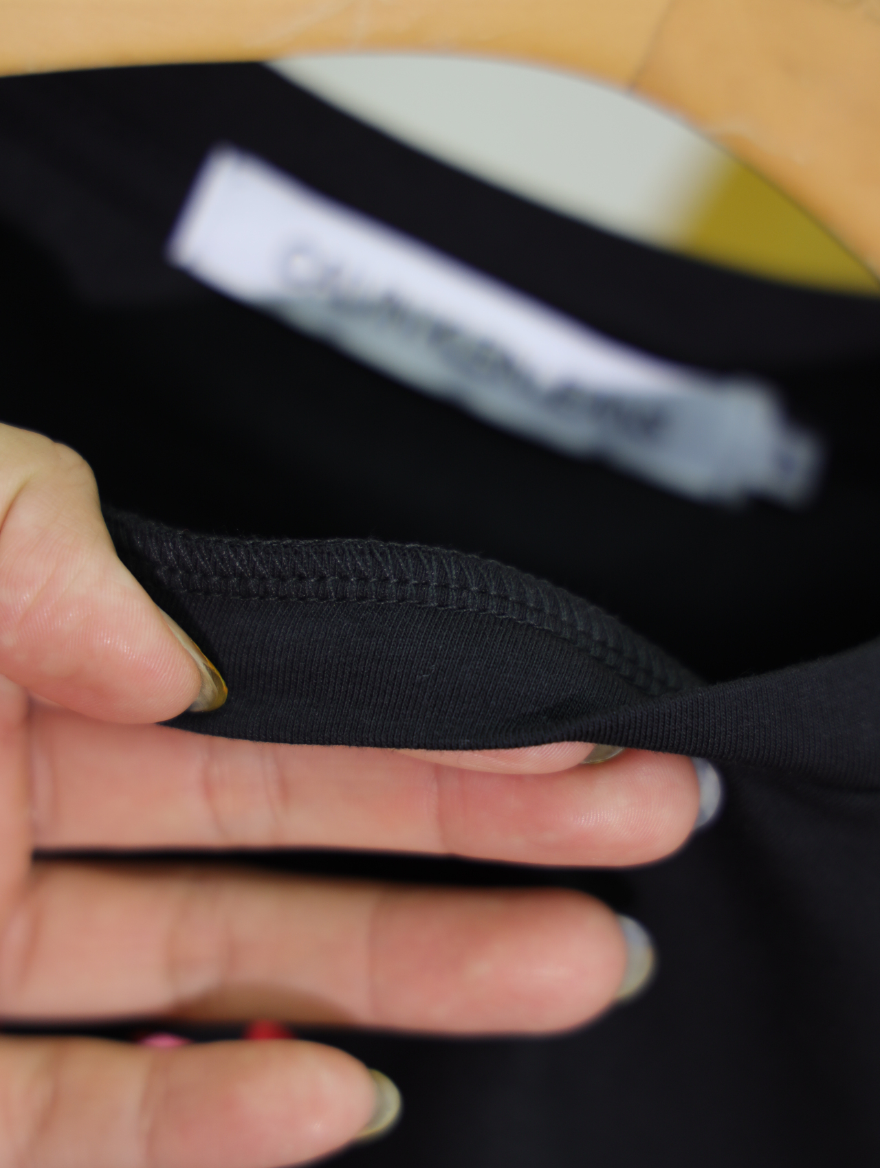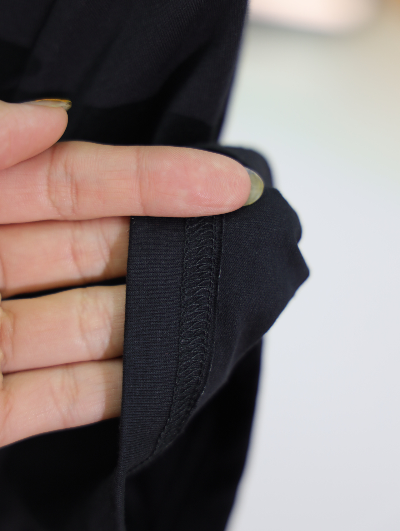 适度减轻了针脚的凹凸感,侧边压线缝制较宽,质地较为平滑,带来舒适的肌肤触感。