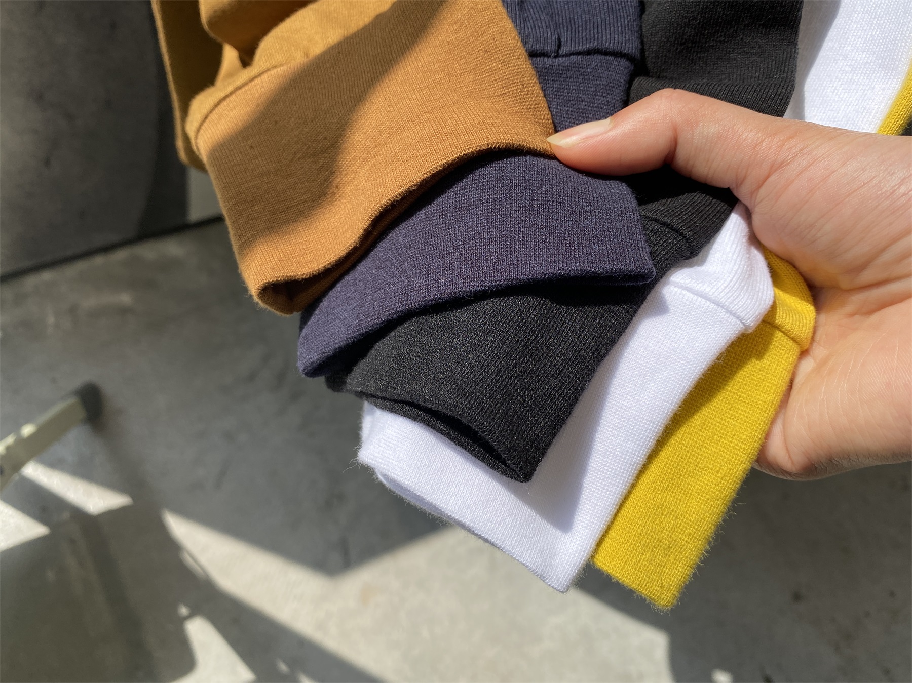 高品质的三针五线反车线,面料是双股21支220g纯棉短袖面料