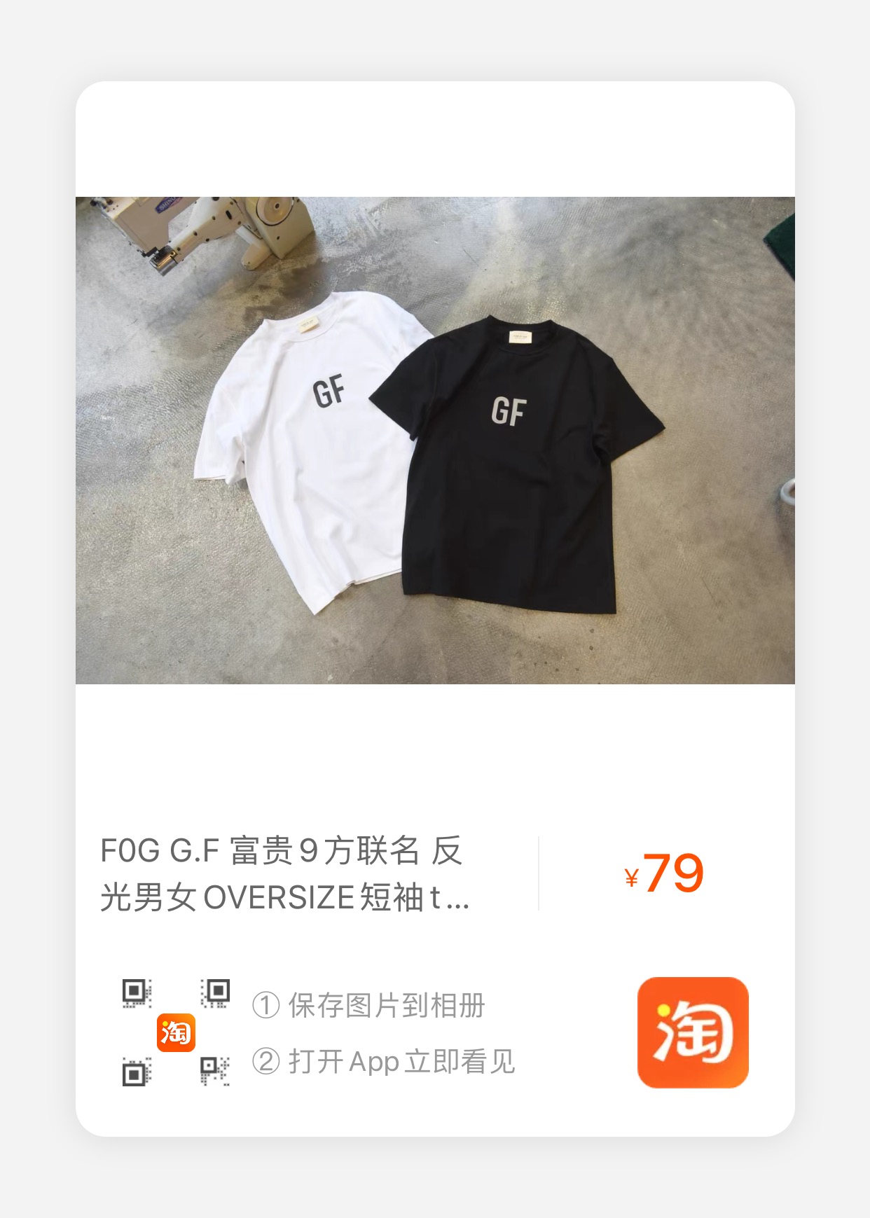 FOG GF 富贵九方联名慈善第六季主线反光男女OVERSIZE短袖t恤