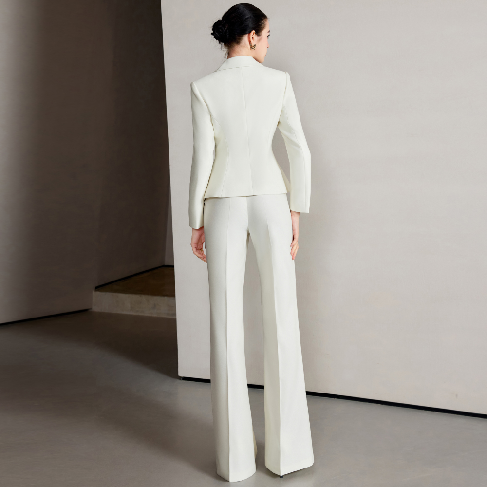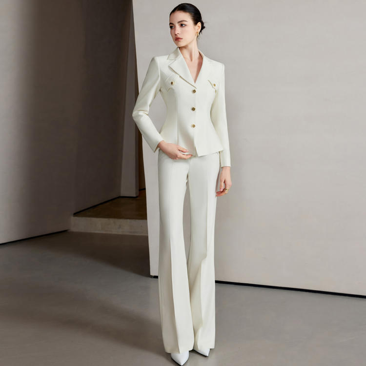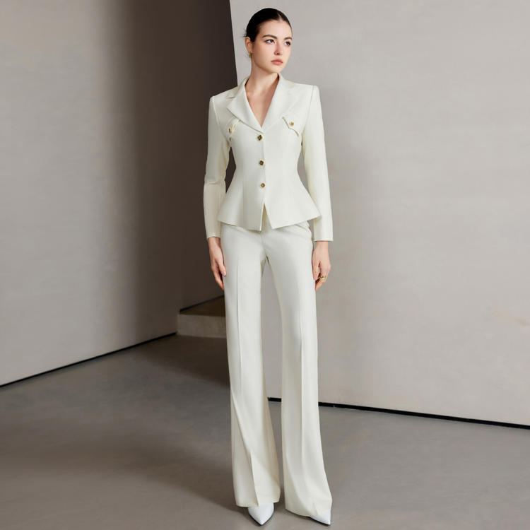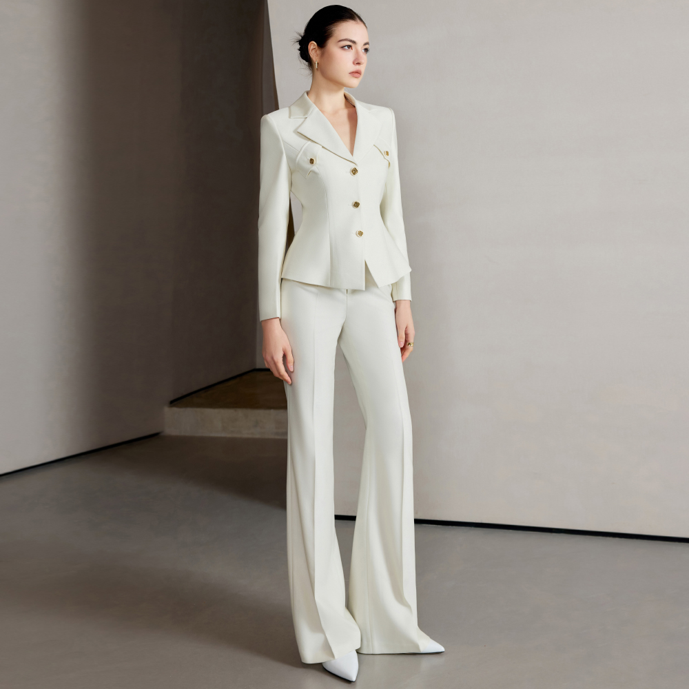 色调是那种纯净又温柔的栀子花白,像把夏日清晨带着露珠的栀子花瓣穿在了身上,清新又高级。单排扣设计简约大方