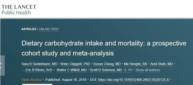 2018年发表在《柳叶刀 公共卫生》上的一项历时25年、覆盖43万人的研究结果显示:低碳水化合物饮食,会缩短4年的预期寿命。