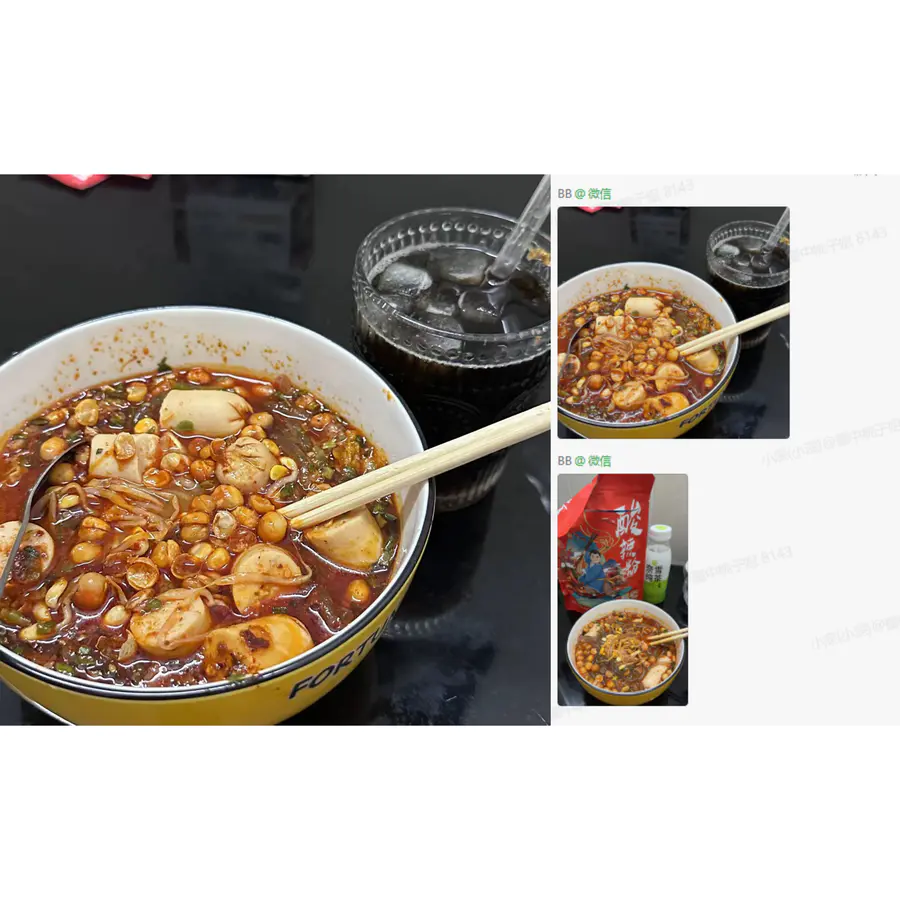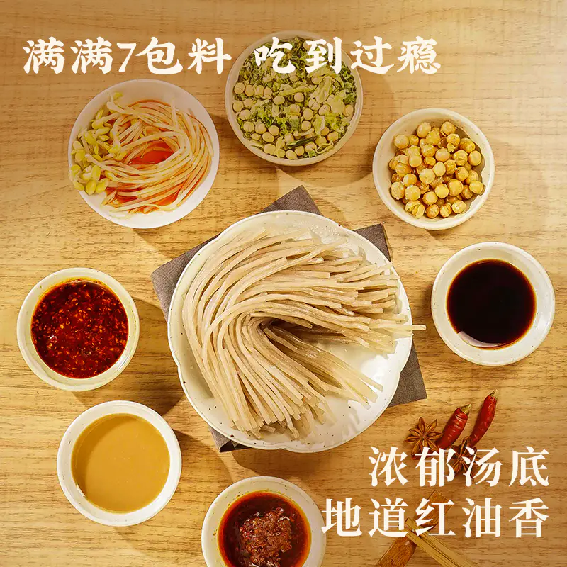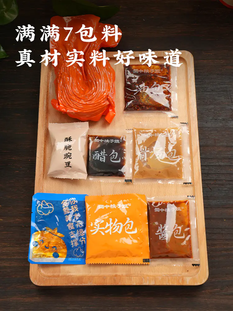 四拌:开盖后,加入醋包、豆芽包、豌豆包,搅拌均匀即可食用