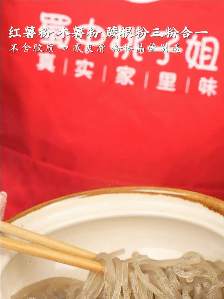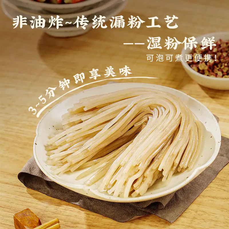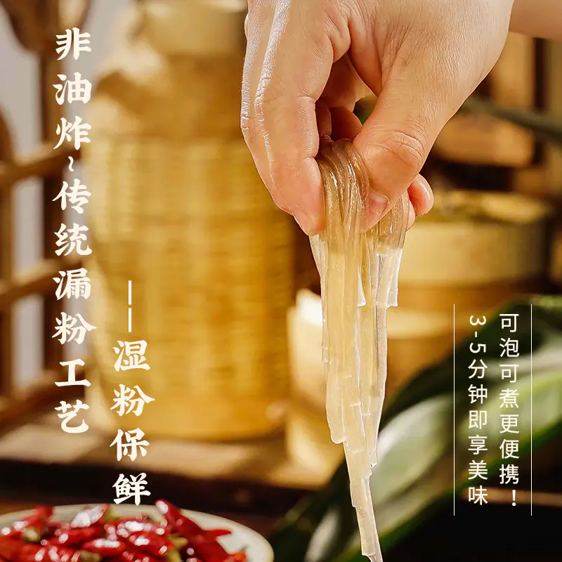 • 鲜湿粉条,以食用甘薯淀粉,木薯淀粉,蕨根粉精心调配,口感更好