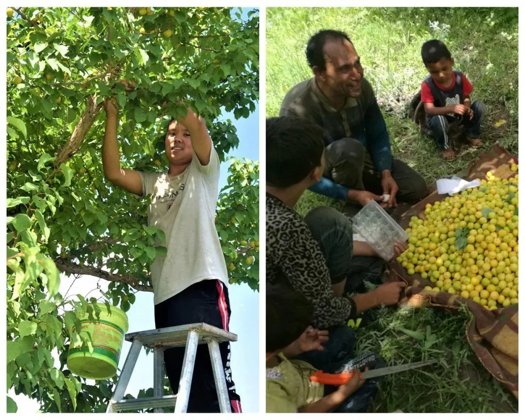 等到杏花凋谢长出花生豆大小的果子时,便轮到淳朴的新疆人民出马啦。