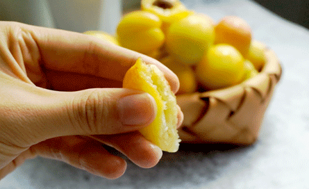 用小锤子砸开,白玉一般的杏仁温润又酥脆,清香微甜的新鲜滋味可比带苦涩的杏仁干美妙多了,用来做些小甜品也很妙哦。