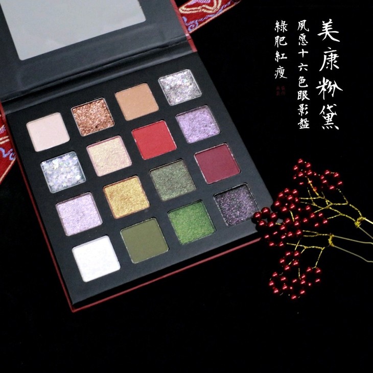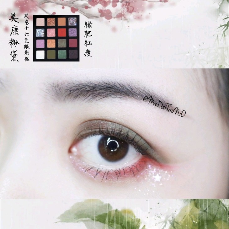 用的是夙愿十六色眼影盘—绿肥红瘦