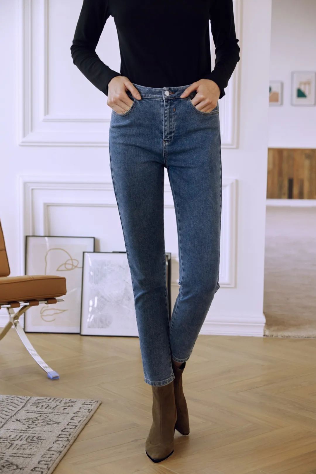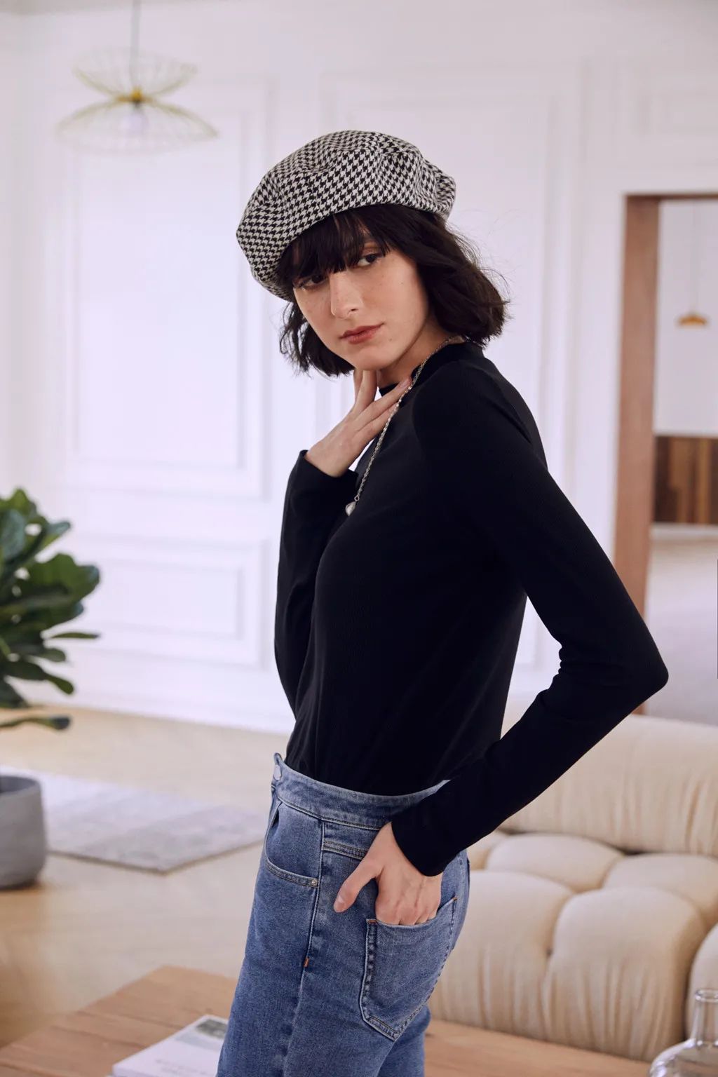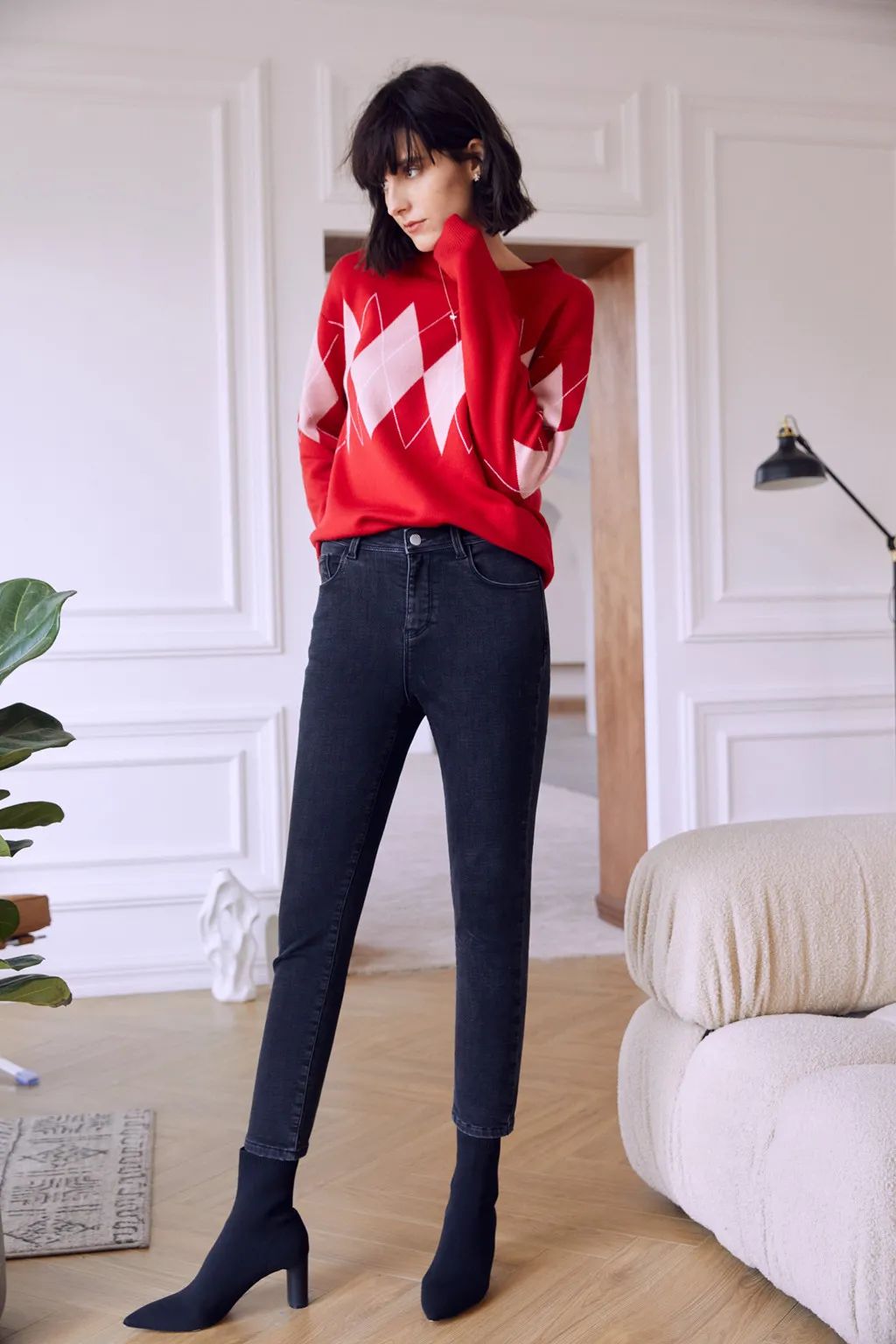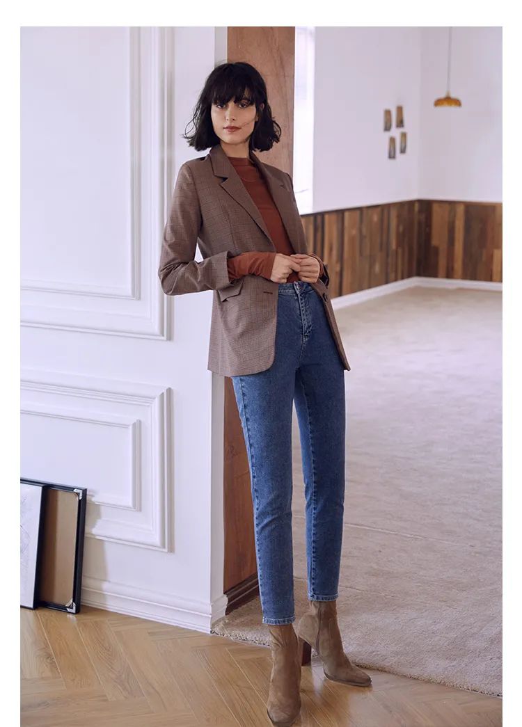 紧身牛仔裤作为冬日经典单品,不仅百搭,还兼具保暖。