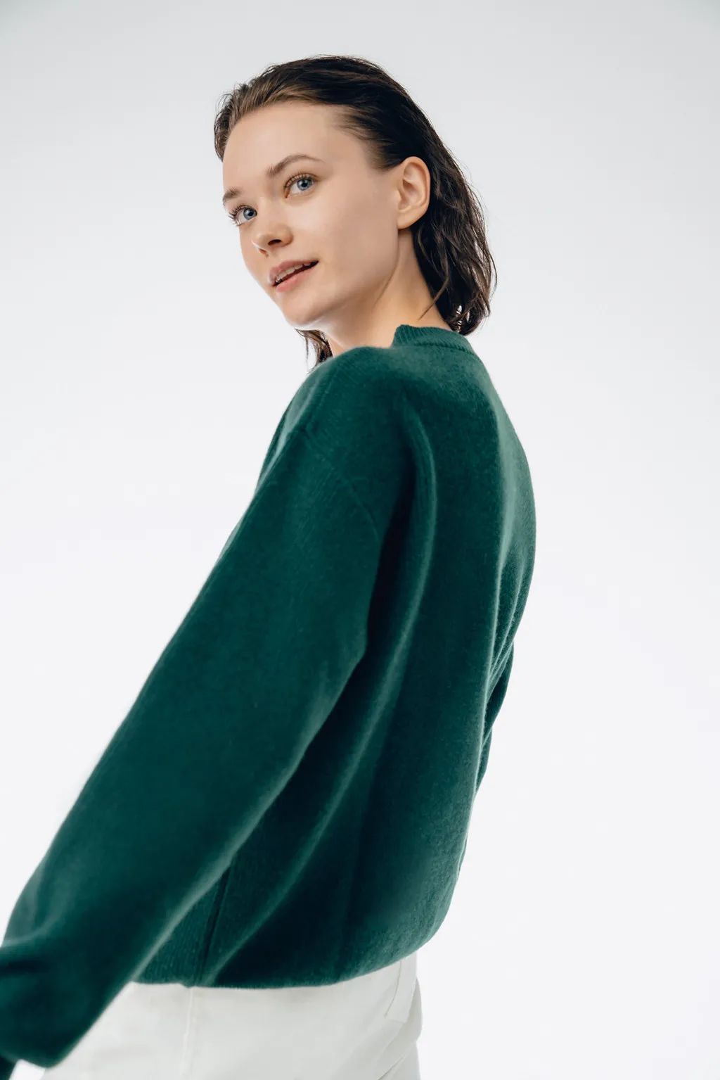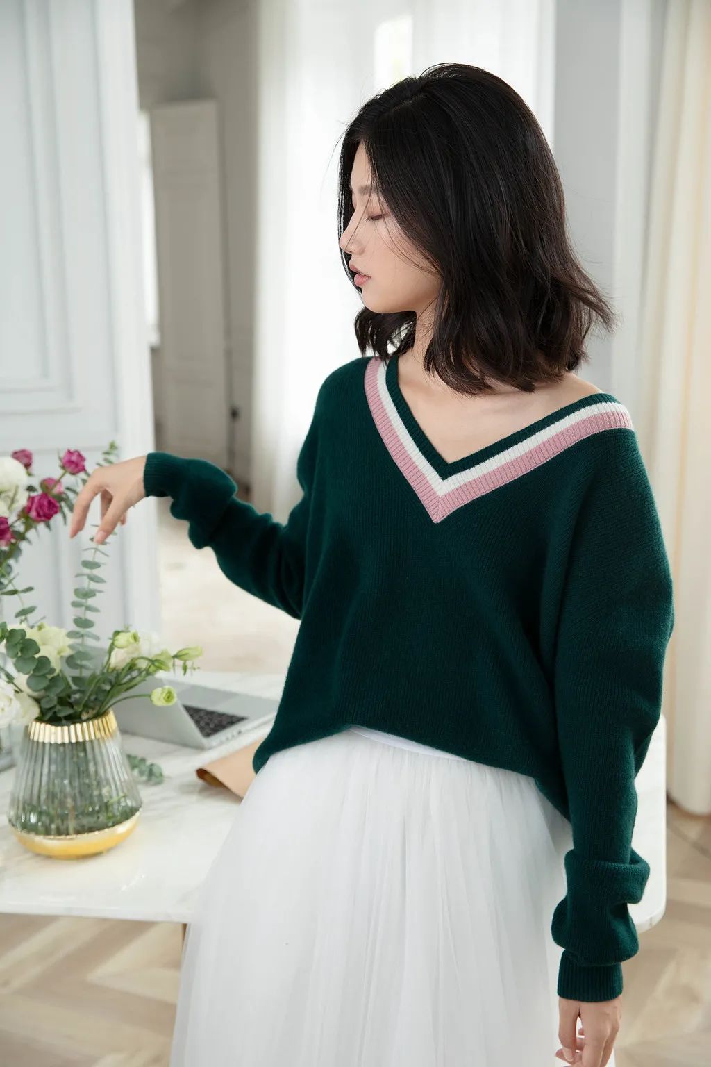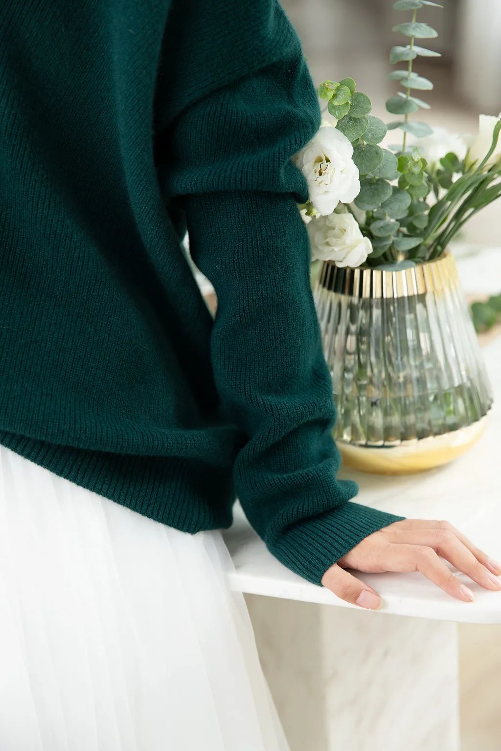 - 苏格兰邓肯大V领墨绿色羊绒衫 -