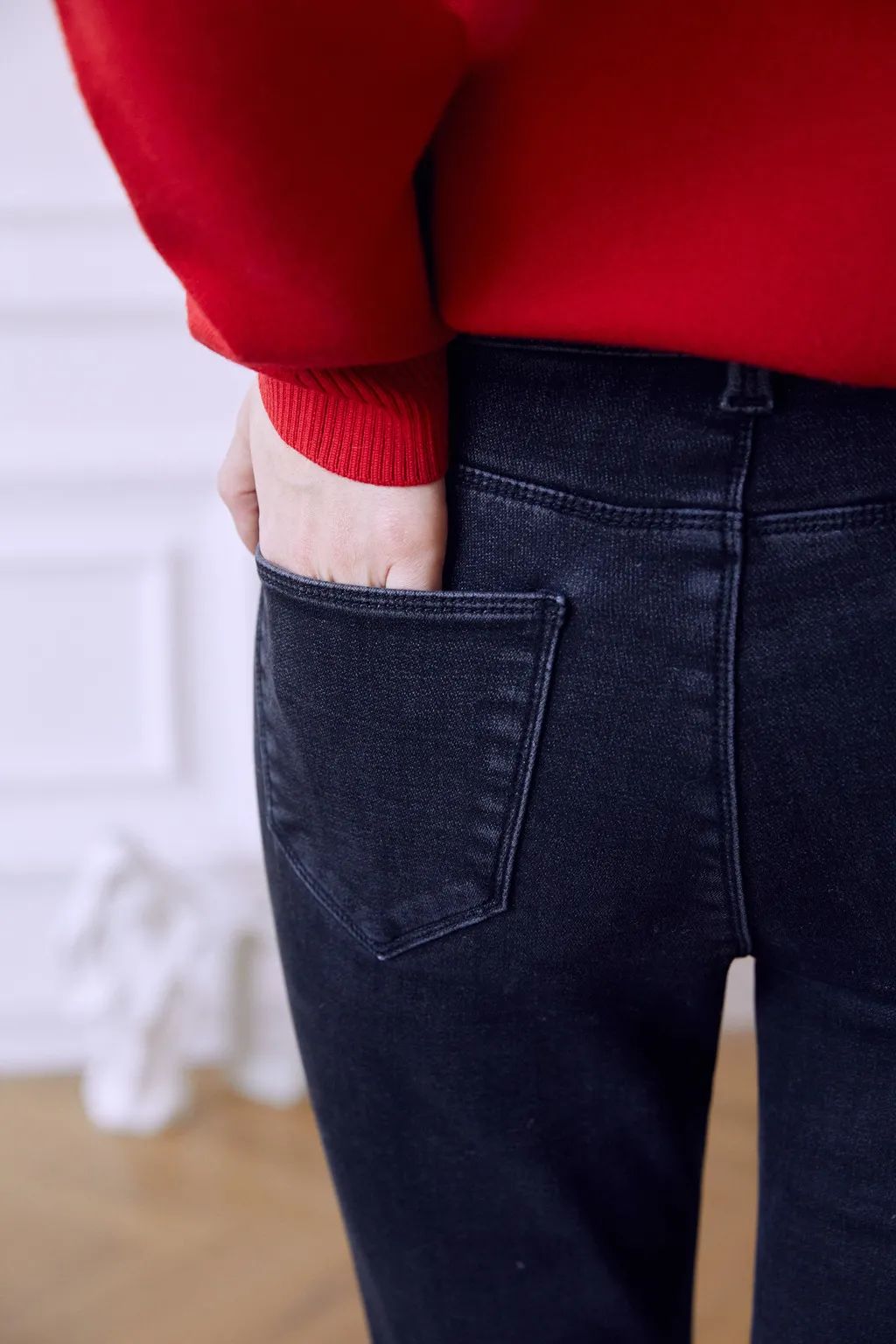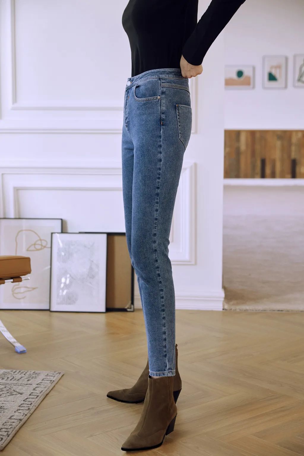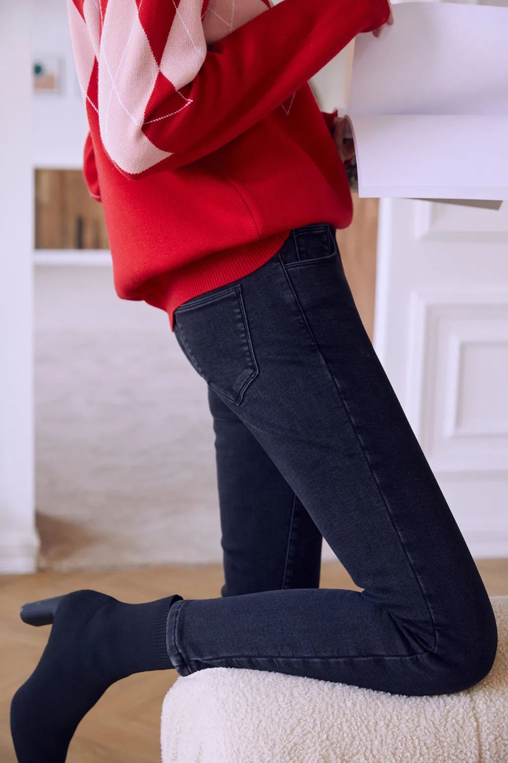 没到最冷的时候,还可以选择这条抓毛牛仔裤。