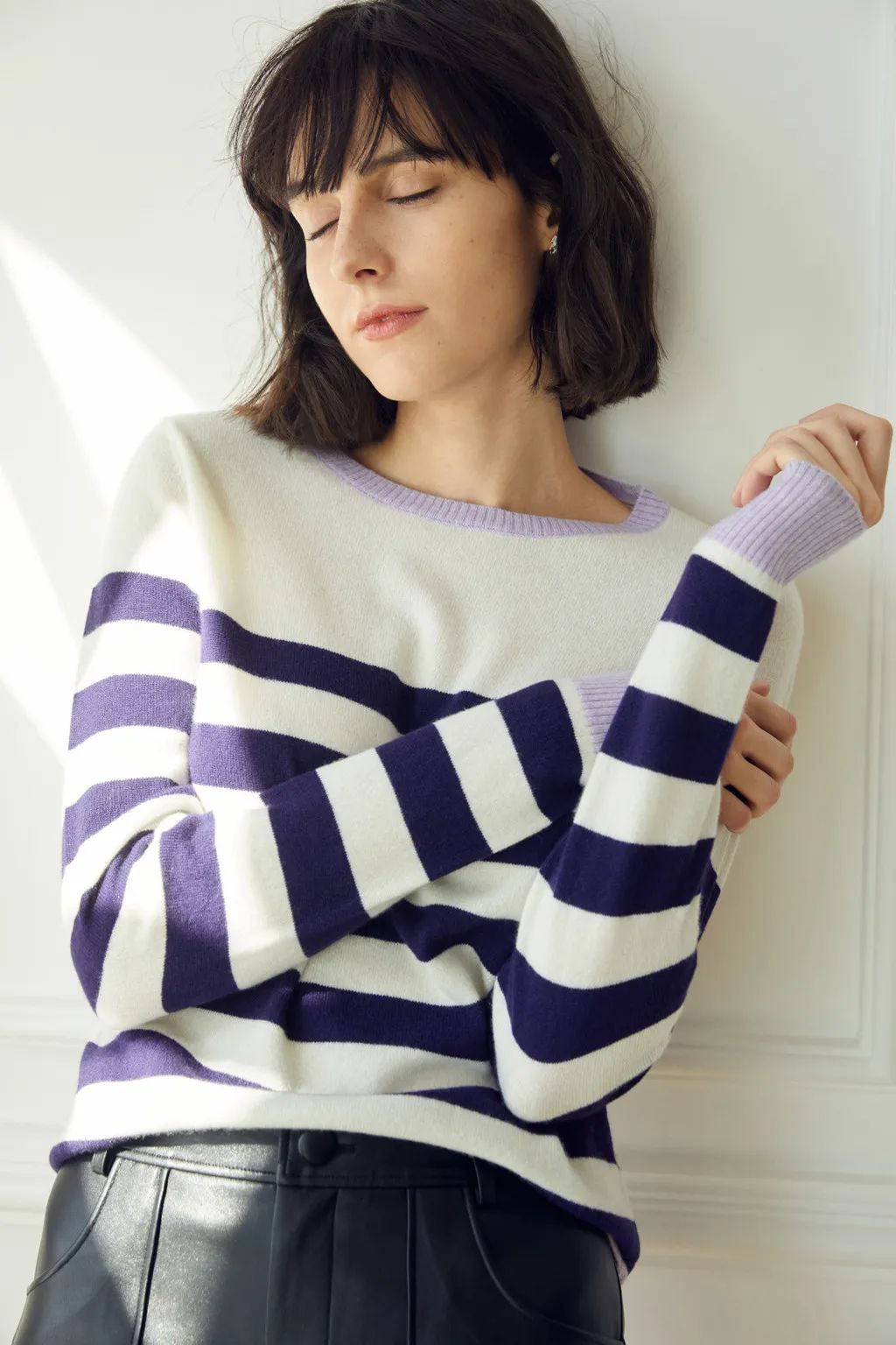 - 苏格兰邓肯纯羊绒宽条纹海魂衫 -