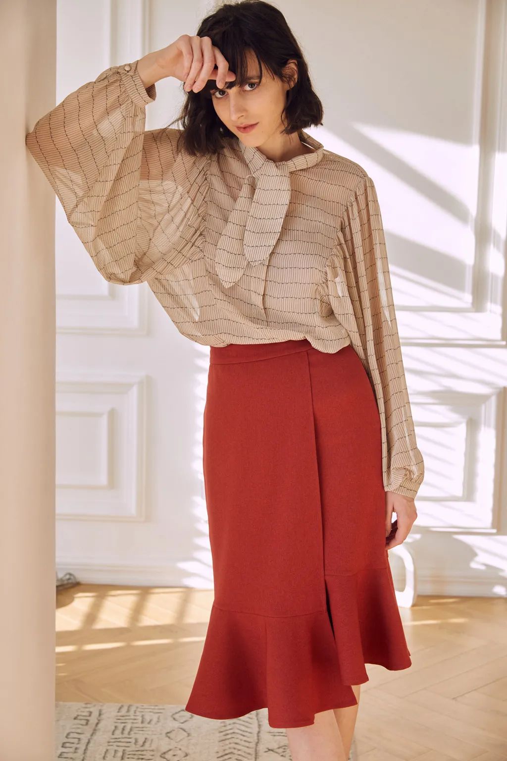 锈红色时髦又亮眼,搭配丝质衬衫更是充满了女人味~