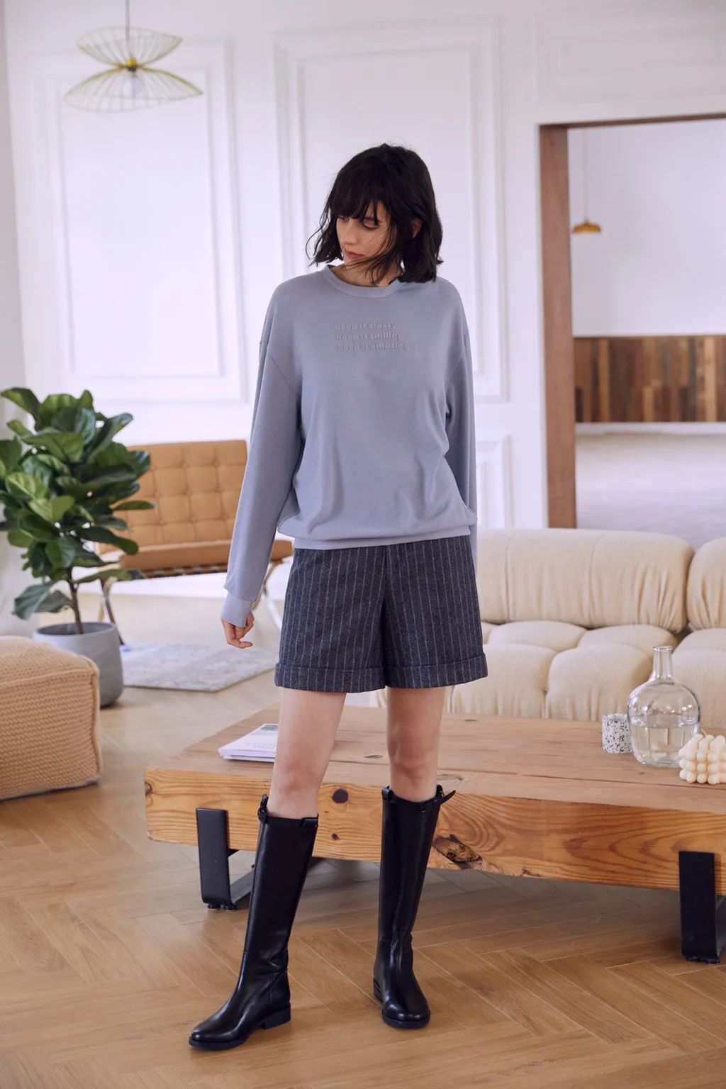蓝色非常显肤白,外搭大衣显瘦不沉闷,搭配一条格纹短裤减龄感十足~