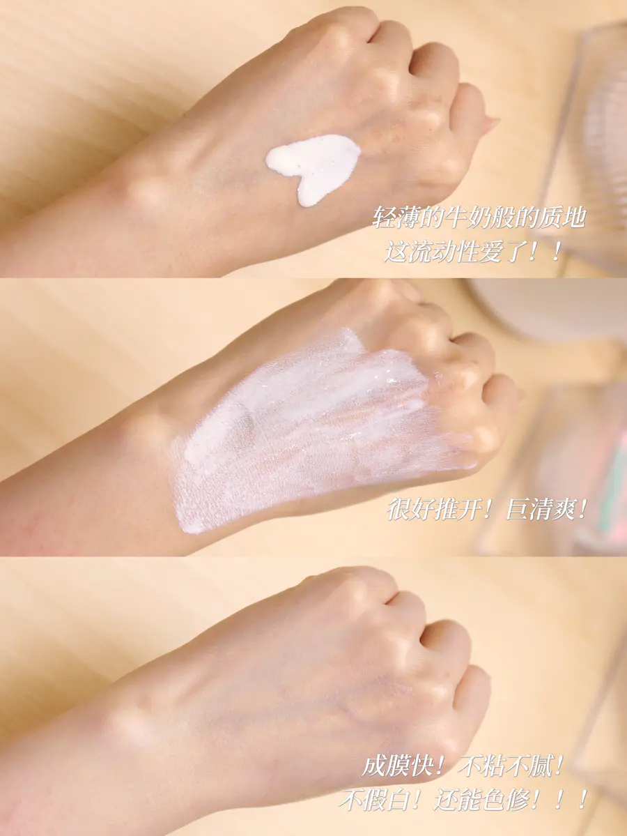 清爽乳液质地,易推开,肤感轻盈,一抹成膜,还能提亮均匀肤色,素颜神器!