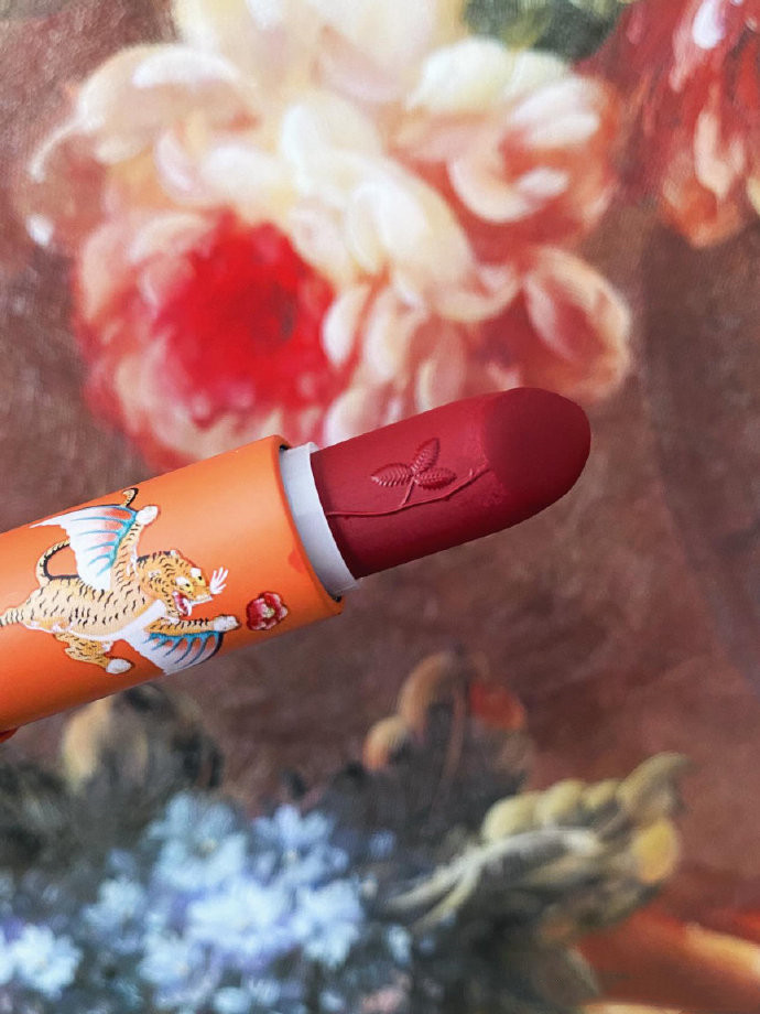 口红膏体上还有雕刻的蔷薇花,绝美国风😆