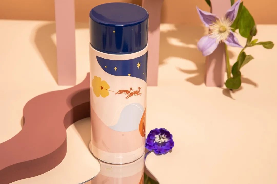 杯身的设计是从儿力力的插画里提取了元素做延展:御鹿、繁花、星空...颜值高又有好寓意。