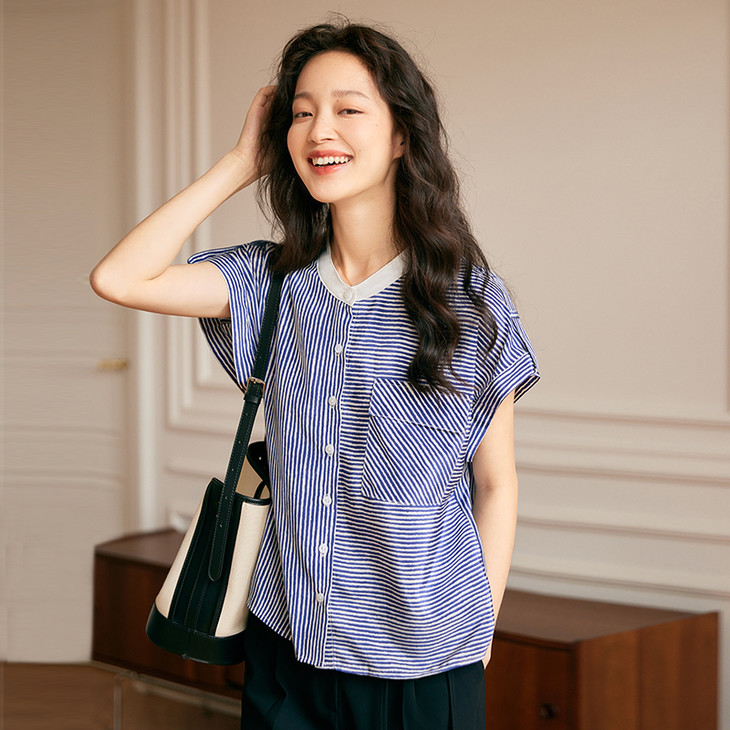 单品推荐|爽滑冰感拜拜肉再见插肩袖手绘条纹衬衫