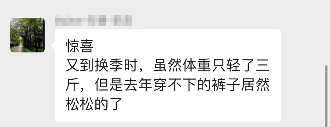 于是,啥也不想,干就行了。凭着一股坚持和狠劲,2个月,我从135斤瘦到了115斤。疗程结束时正好夏天来临,当买衣服全是M码时,那感觉真是太好了。