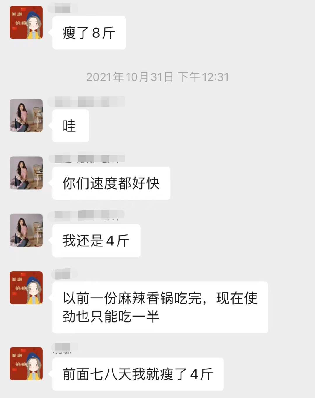 而后的某天,我在小区推娃散步时,看见一个同龄的妈妈瘦了不少,问她怎么减的,她答: 点穴。每天只需几分钟点点穴、严格控制饮食,就能有这样明显的效果?我得试试!我果断办卡。又一次,凭着那股狠劲,我用两个月,从155斤减到了128斤。在128斤时遇到了瓶颈,反反复复却很难瘦下去,就没再坚持。