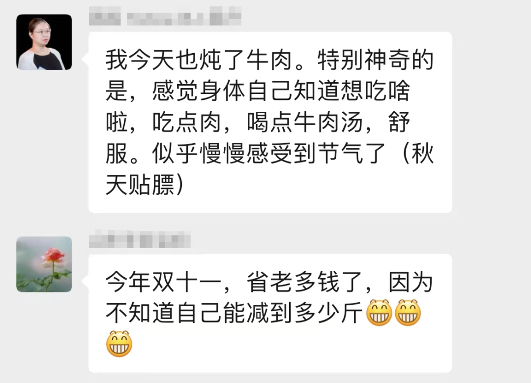也许我之所以如此认可红辰老师,除了她的专业,她的经历,她的智慧和气场……还有就是,我一直追求着内外兼修、内外和谐、内外美好、身心灵合一自在的状态。而老师让我看见:减肥不仅仅是减肥,它是一场身心的修行,是为了遇见真实的自己。