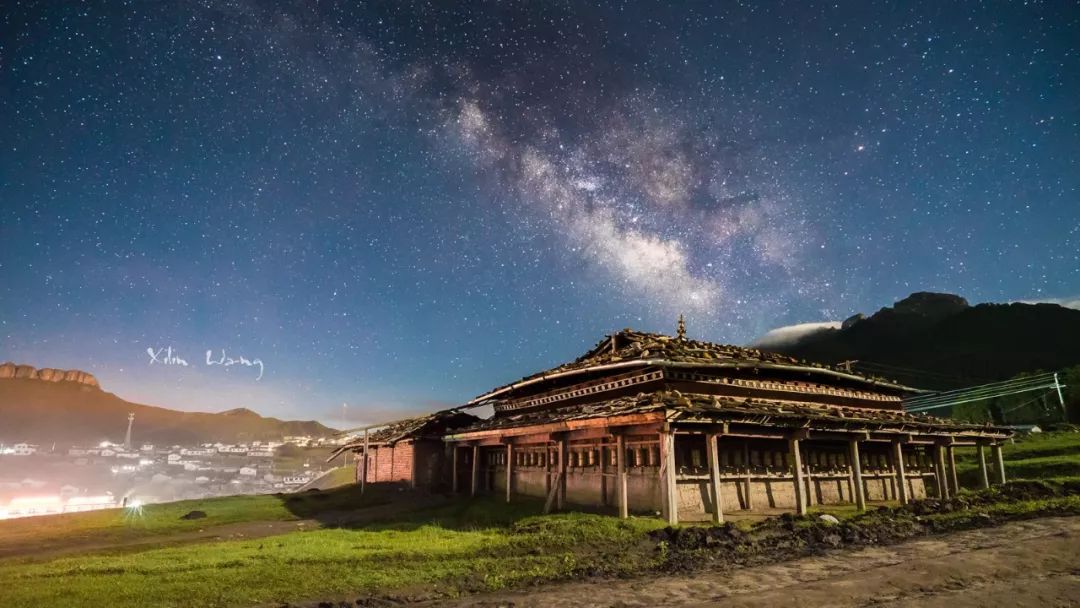 在郎木寺的最高点,银河的轨迹就在眼前。