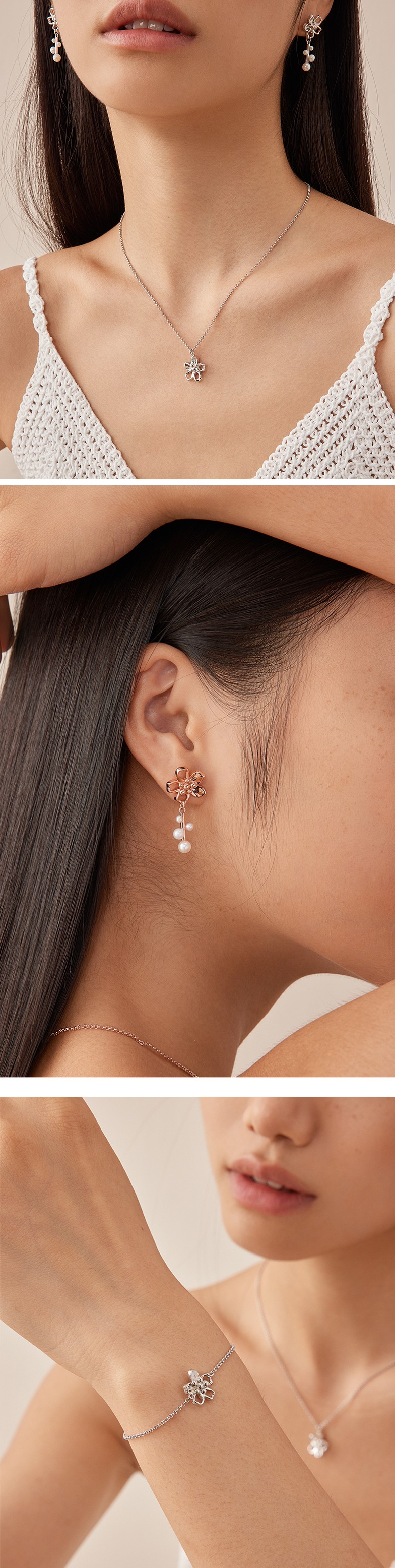 这款樱花系列不同于之前的粉色樱花,而是金属质感,更彰显了女性内敛的奢华!最独特的是它的花瓣,三瓣镂空,两瓣实心。既轻盈灵动,又不会过于繁琐冗杂。