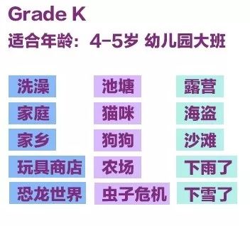 Grade K针对约5岁小朋友,