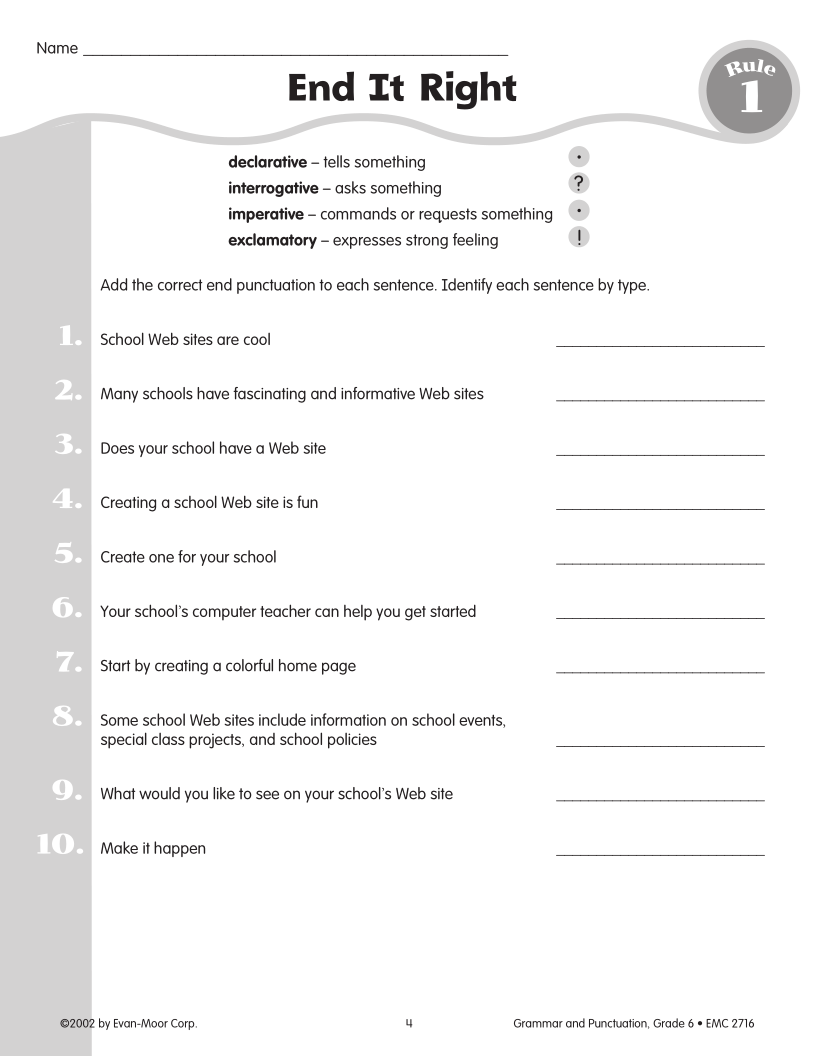 Evan-Moor Grammar & Punctuation