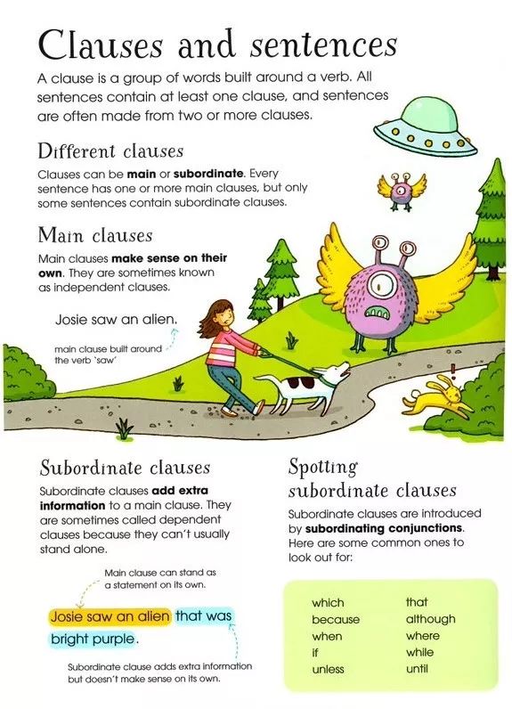 另外本书在讲sentence的时候还特别设置章节分析了clauses从句这个语法点,这个在青少语法学习书里面并不常见,这些可能也是为了让小朋友写作句型更加丰富。