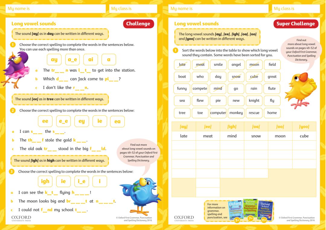 Oxford School 是该系列中最高阶的一本,除了语言难度上再上了一个层次,并且取消了前两本中的卡通角色 —— 那只多彩多姿的小鸟,也收集了一些语言使用场景知识和不常用的标点符号,例如Grammar有章节进行了direct speech and reported speech的异同分析;Punctuation增加了underline(_)、forward slashes(/)、ampersands(&)、asterisks(*)的使用讲解。