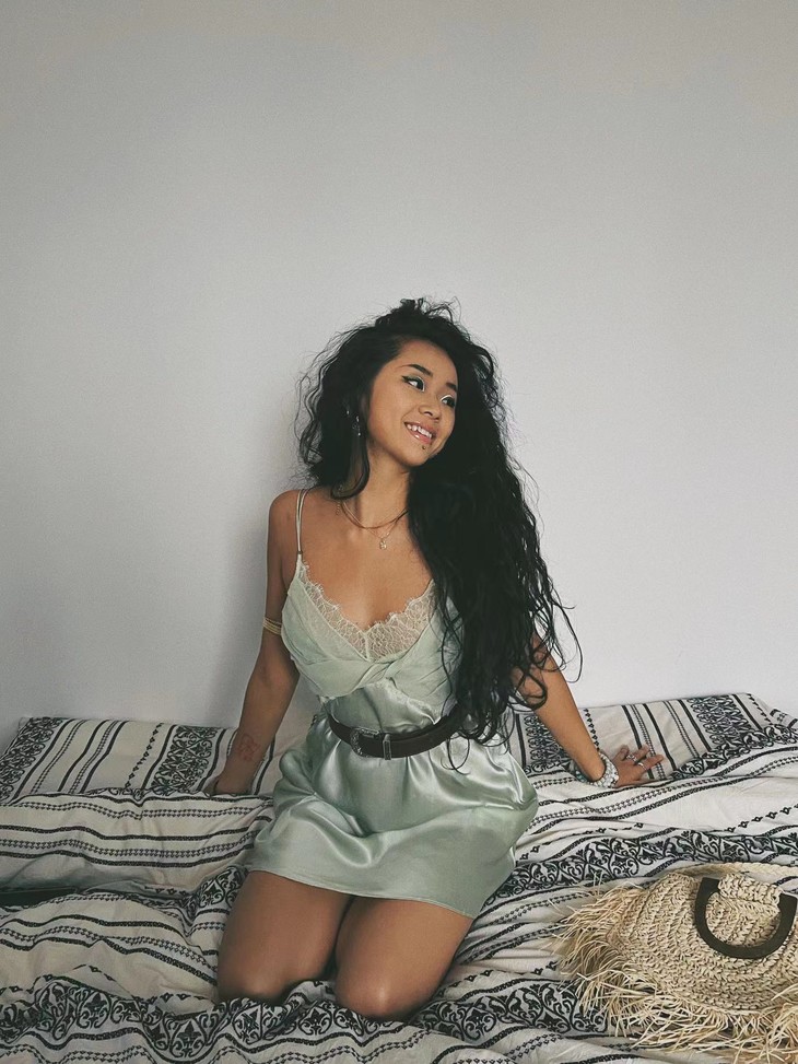 灵动演绎SANGLUO薄荷绿真丝吊带蕾丝睡裙