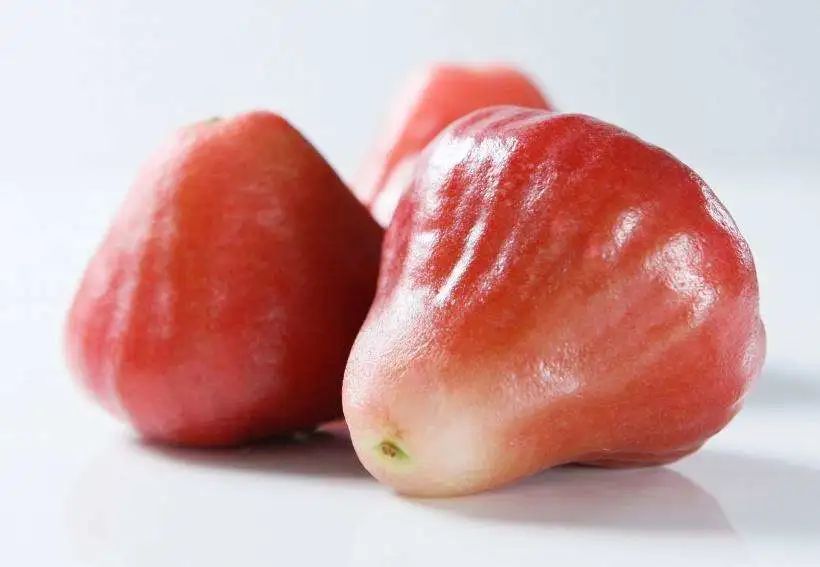 1. 取3个莲雾清洗干净,沥干水分将中间和尾部扣除干净,为方便浸泡出果汁,最好切成薄片