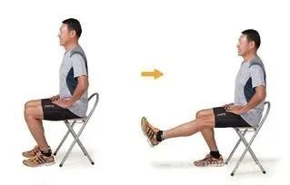 动作要领:坐位,膝关节呈90°左右,缓慢伸直膝关节(此过程超过4s),髌骨和脚尖垂直向上,踝关节尽可能向头部背伸,注意保持大腿不离开椅子,保持5s,缓慢放下(此过程超过4s)。循序渐进增加训练强度,可以通过脚踝绑沙袋或弹力带来辅助训练。