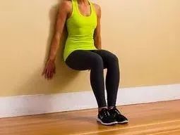 动作要领:背部顶墙,双脚分开与肩同宽,逐渐感受双侧大腿及膝关节绷紧感,下降至膝关节弯曲75°,坚持15-30秒。