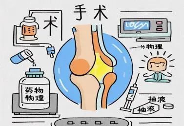 手术治疗关节镜微创:清理坏死滑膜、修复撕裂半月板,术后需拄拐2-4周。