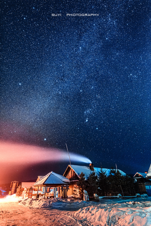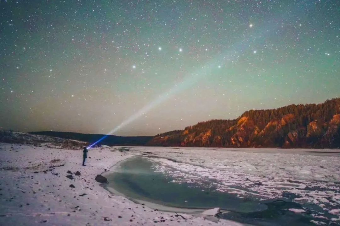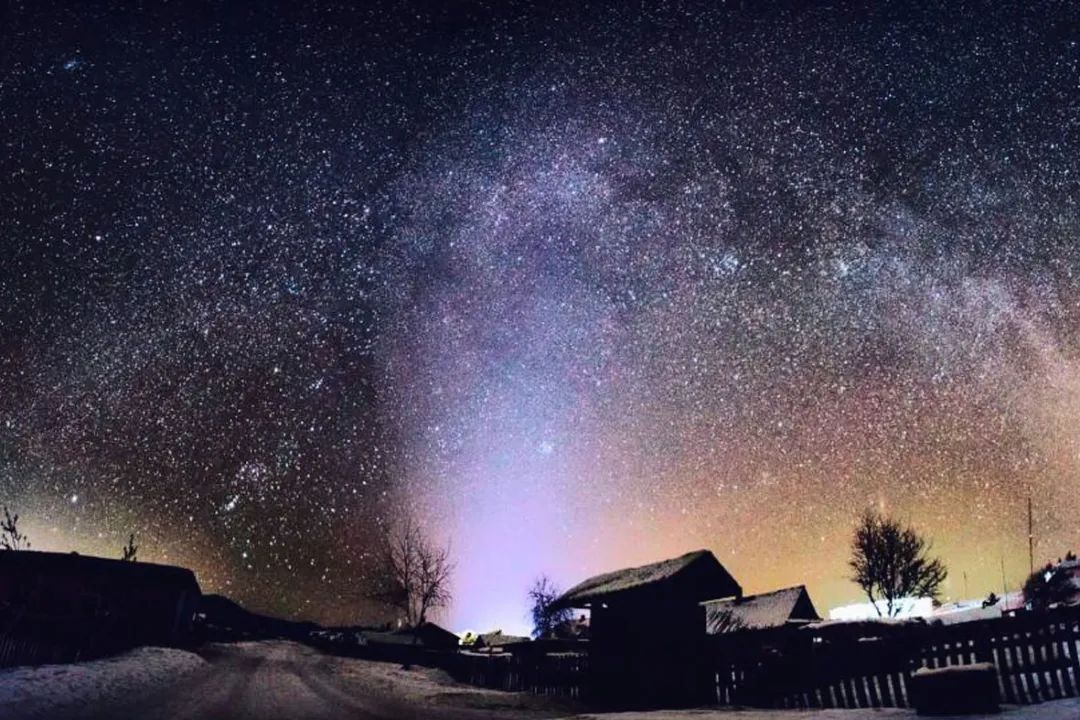 虽北极光罕见,但繁星常伴。在中国最北极看到的静谧和震撼是其他地方无法可及的。漠河的星空被誉为最美星空,银色的星星点点,是肉眼可见的银河系。夜幕下的北红村夜空可寻找北斗七星、猎户星座的形状。
